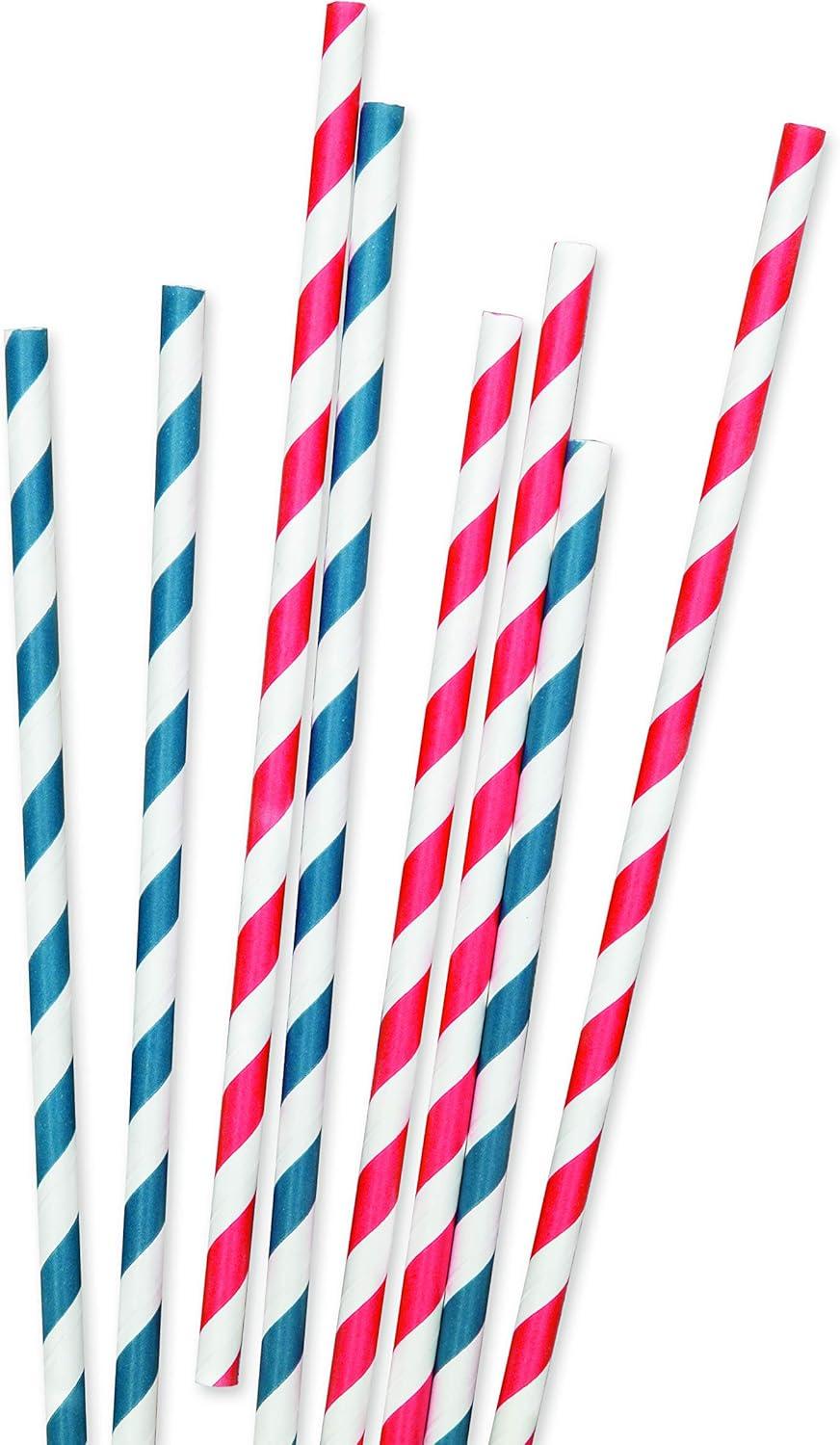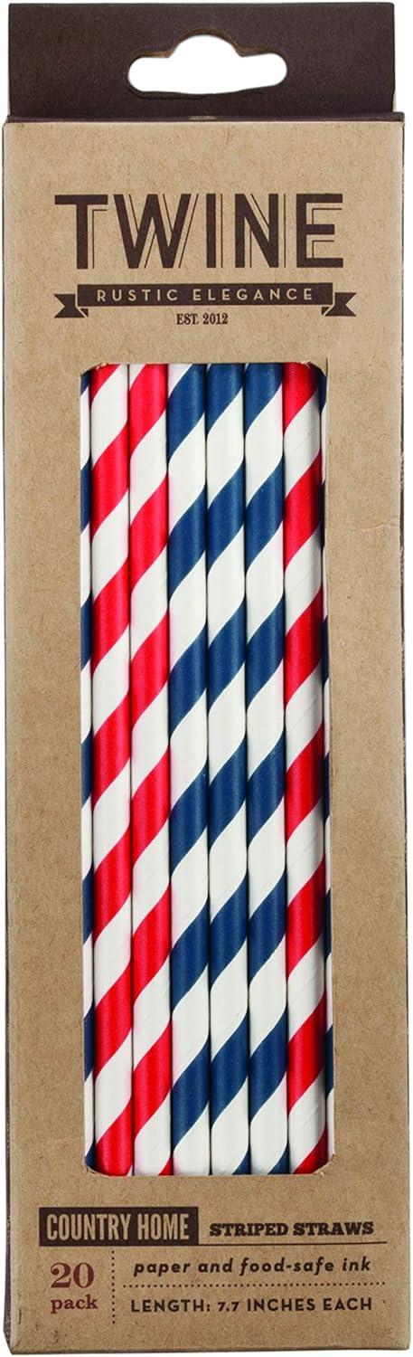 Bring some color to your table with these adorable striped straws. Add a retro or vintage flair to any event that your guests will love! Each pack includes 10 navy/white and 10 red/white straws. Made from paper, these straws are food-safe, and biodegradable.
