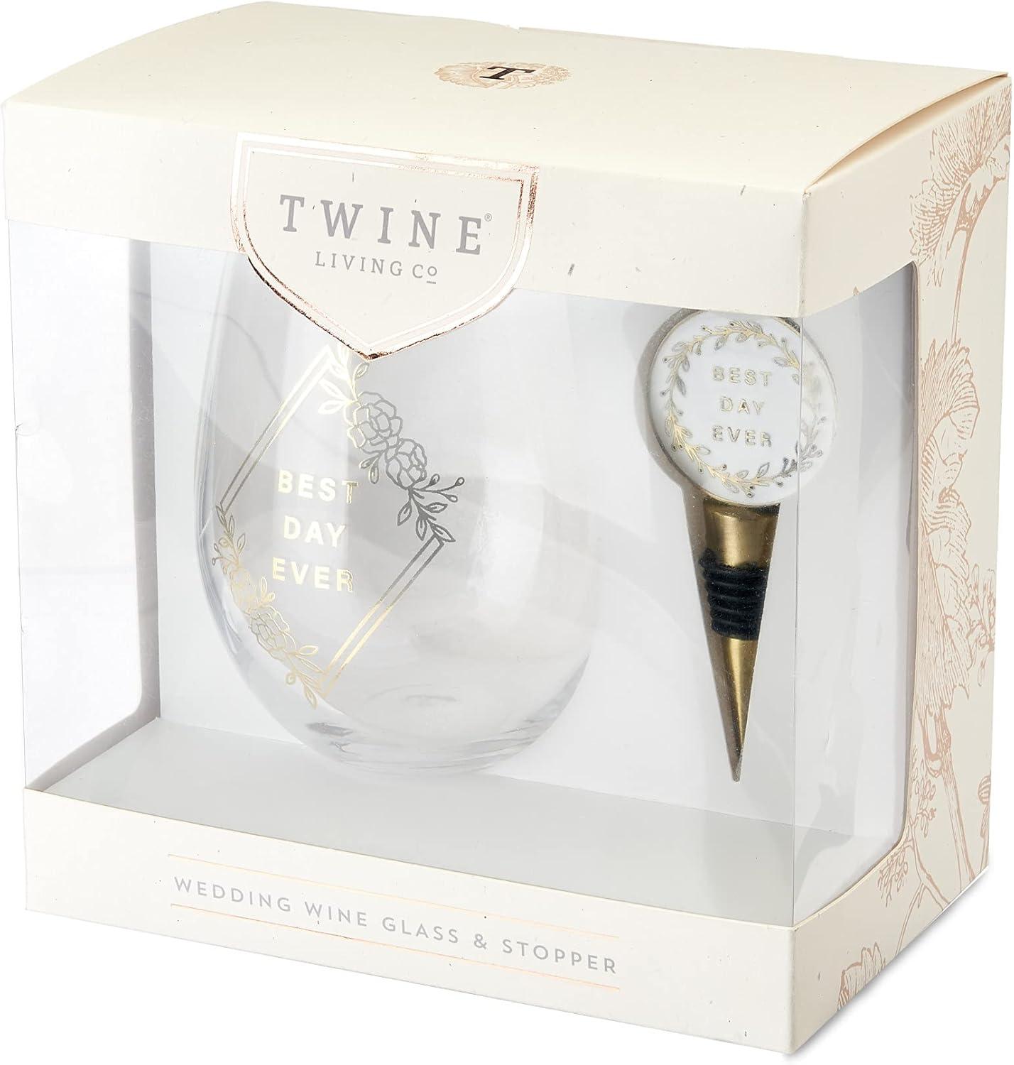 Twine Best Day Ever Stemless Stopper Wine Glass Sets, 16oz, Multicolor(Best Day Ever Set)