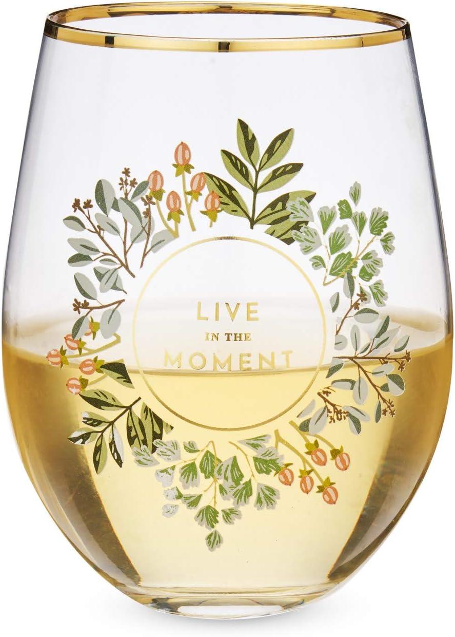 Twine Best Day Ever Stemless Stopper Wine Glass Sets, 16oz, Multicolor(Live in the moment)