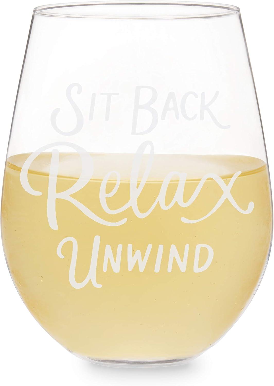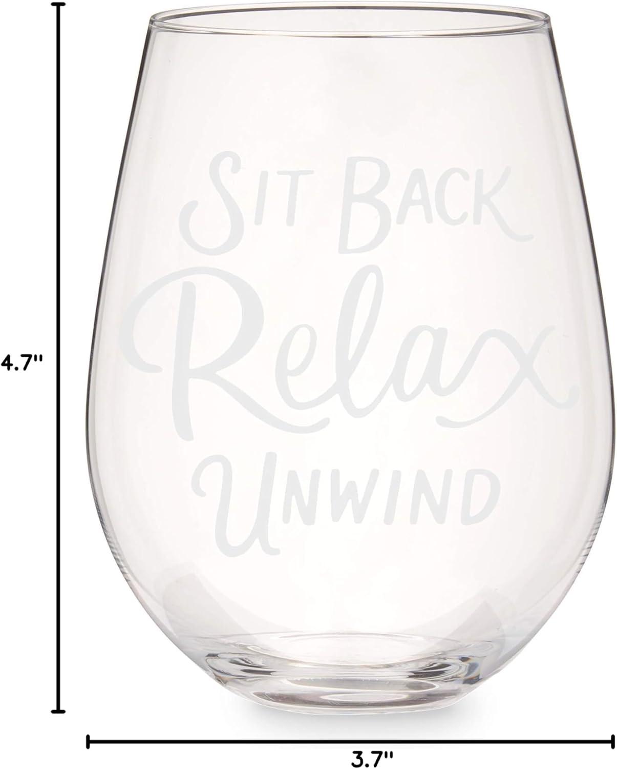 Twine Best Day Ever Stemless Stopper Wine Glass Sets, 16oz, Multicolor(Sit back relax unwind)