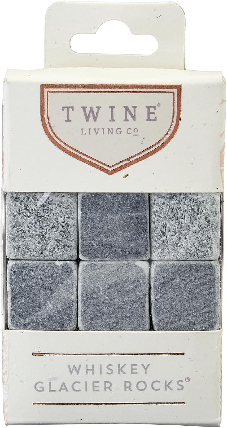 Twine Cooling Stones, Glacier Bourbon Whiskey Rocks, Reusable Ice Cubes, Whiskey Stones Set, Barware, Bar Accessories, Bar Tools, Set of 6, Grey(Glacier Gems)