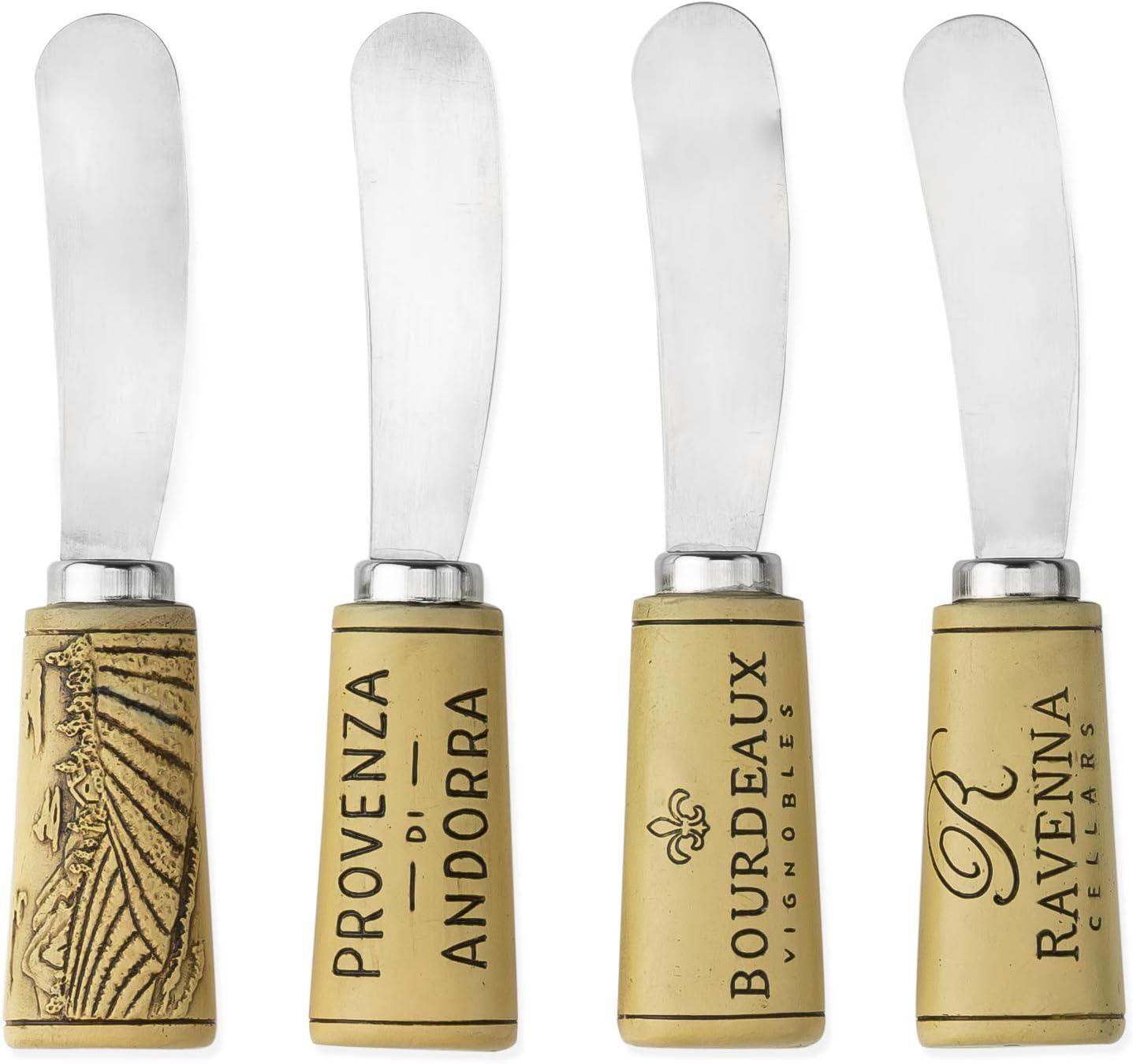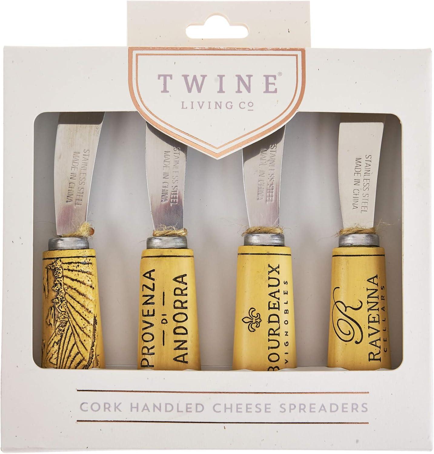 Twine Cork Handle Cheese Spreaders Knives Set – Appetizer Serving Knives – Cream Cheese Spreaders – Set of 4