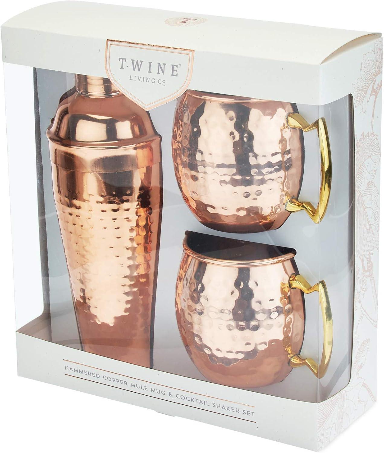 Twine Hammered Moscow Mule Mug Cocktail Set with Shaker for Mixed Drinks, Stainless Steel Kitchen Set, Barware, Set of 2, Copper(Copper Bar Set)