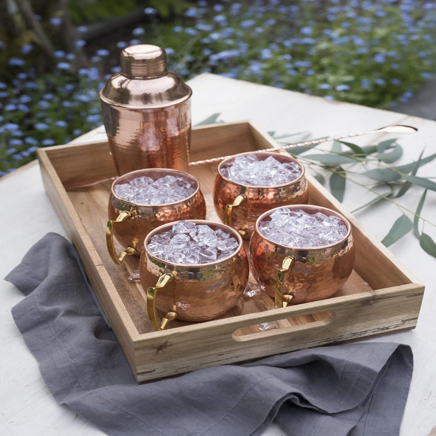 FESTIVE MULE MUG AND COCKTAIL SHAKER – This barware set includes 2 16 oz. Moscow Mule mugs and a 16 oz. cocktail shaker with a gorgeous copper finish! This stylish bar set is perfect for entertaining.