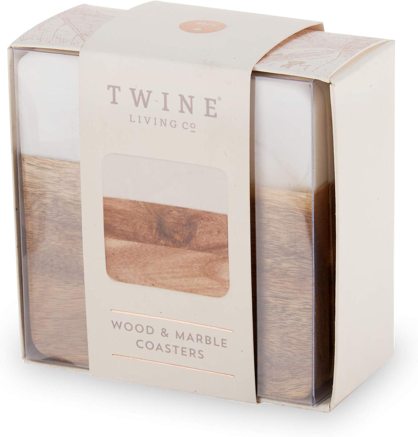 Twine Metallic Dipped Wood Coasters for Coffee Table, Unique Decor Drink Coasters with Copper Accents, Housewarming Gift Home Decor Coaster Set of 4(Acacia and Marble)