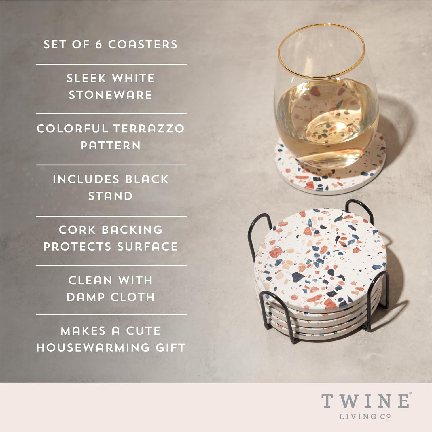 Twine Metallic Dipped Wood Coasters for Coffee Table, Unique Decor Drink Coasters with Copper Accents, Housewarming Gift Home Decor Coaster Set of 4(Stoneware Coaster)
