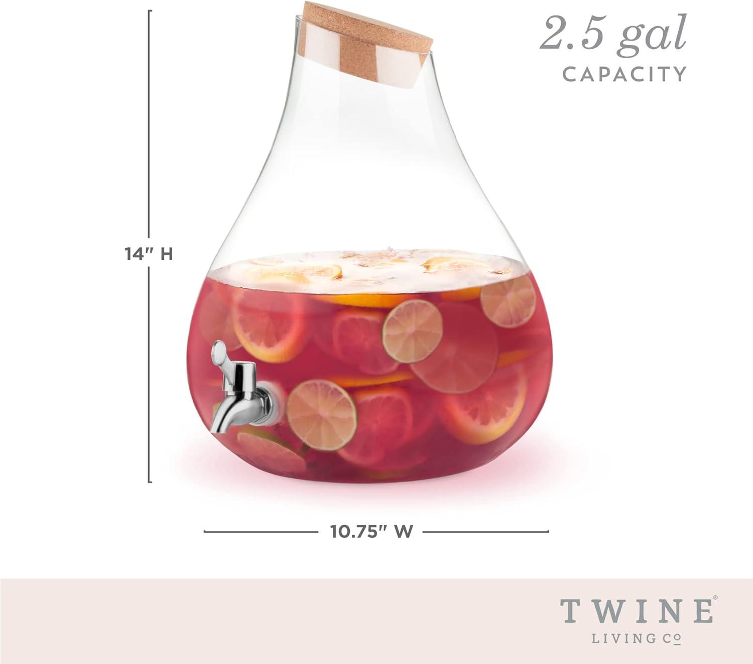 Twine Pearl Beverage Dispenser, Glass Carafe, Cork Stopper, Silver Spigot, Beverage Service, 2.5 Gallons, Set of 1(Glass Carafe)