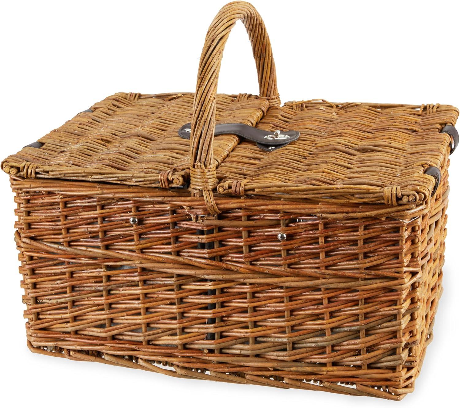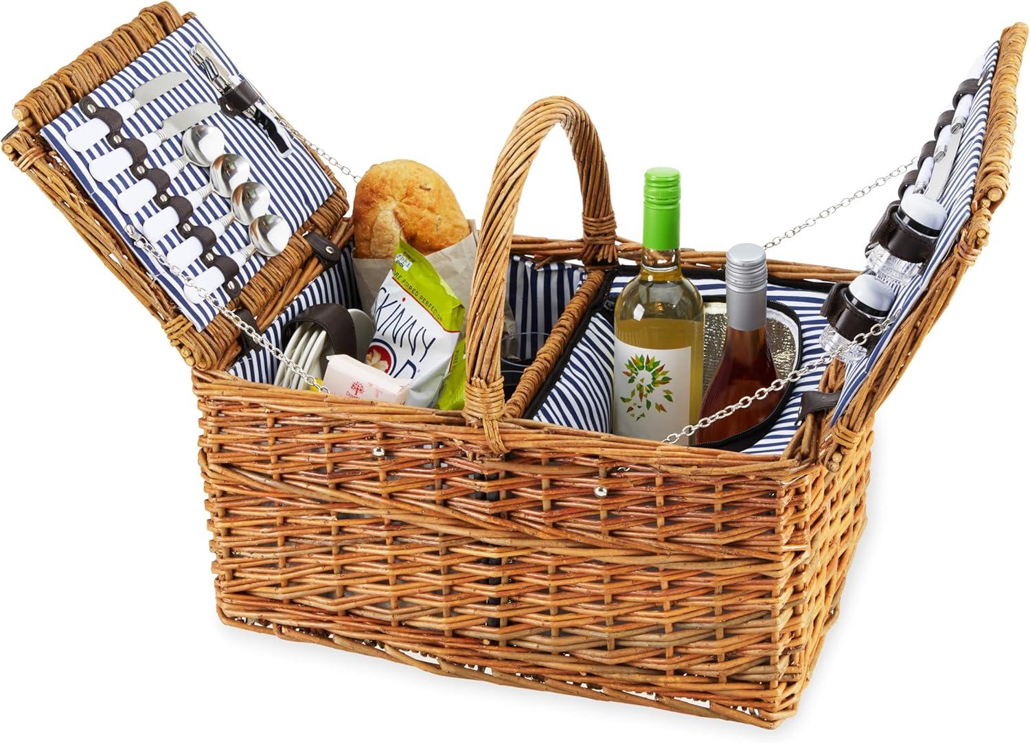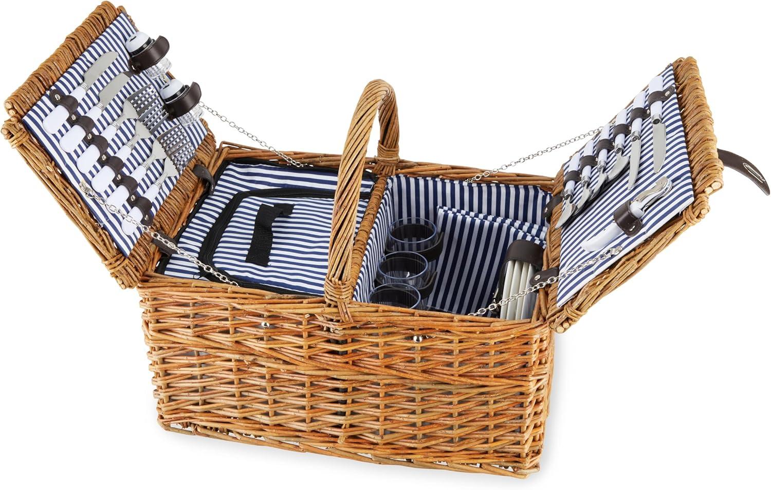 Twine Picnic Blanket – Waterproof Outdoor Blanket with Leather Carrying Straps and Picnic Stakes – Navy/White Striped 6pc Set of 1(Cape Cod Picnic Basket)