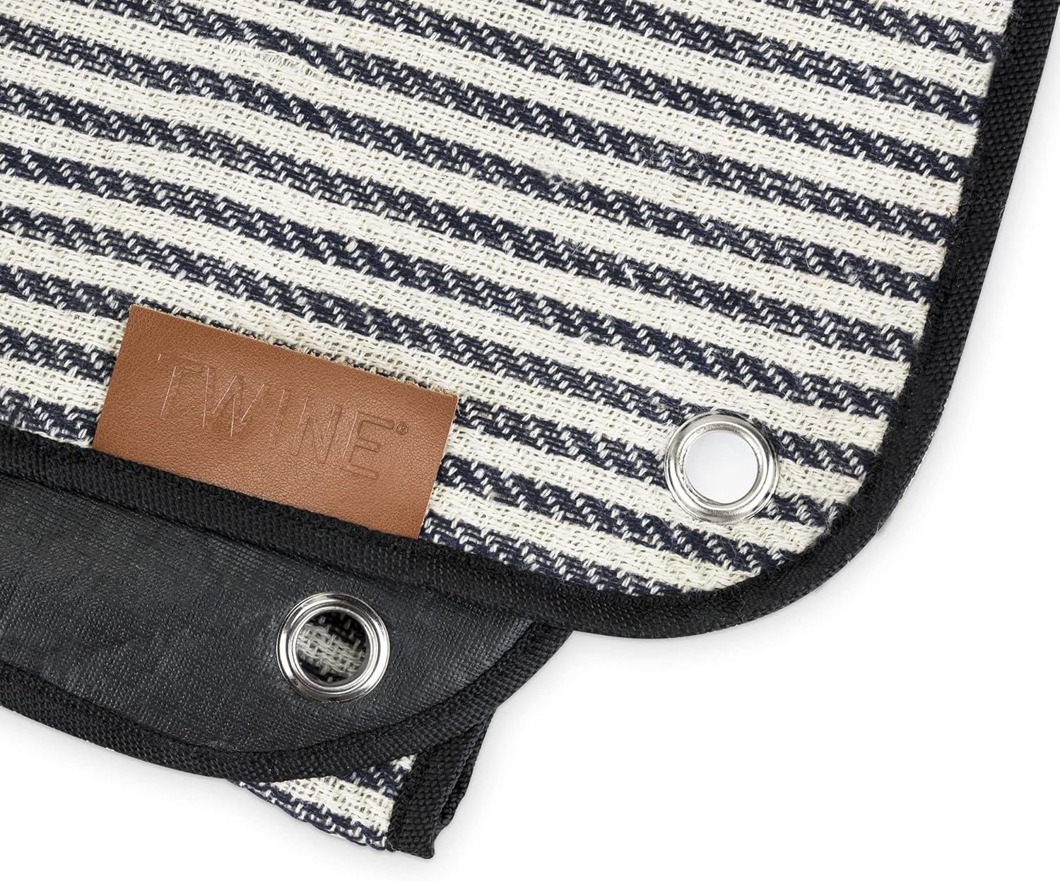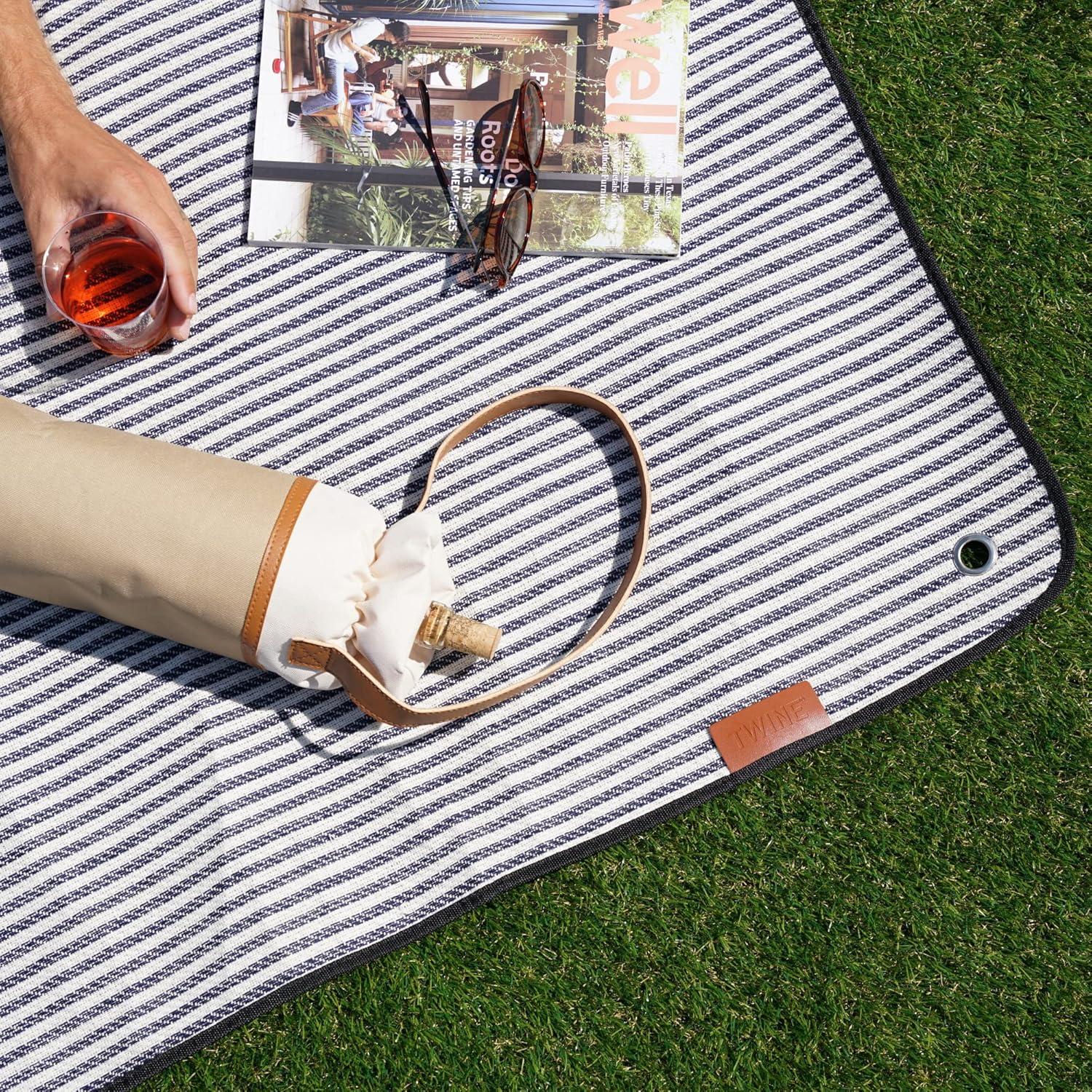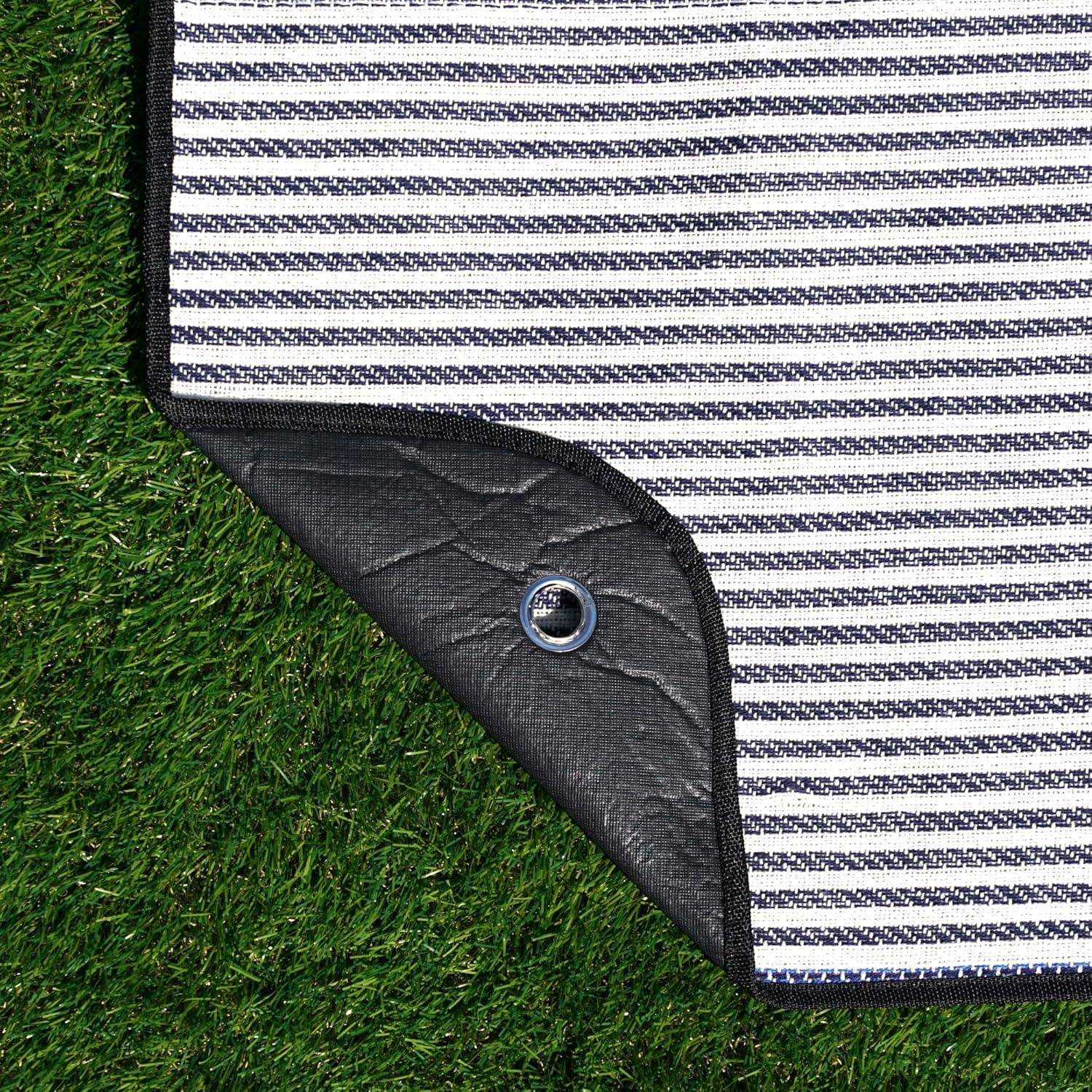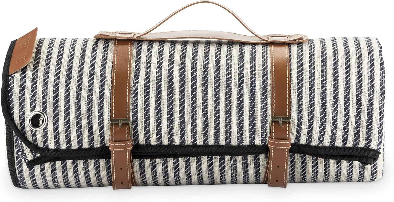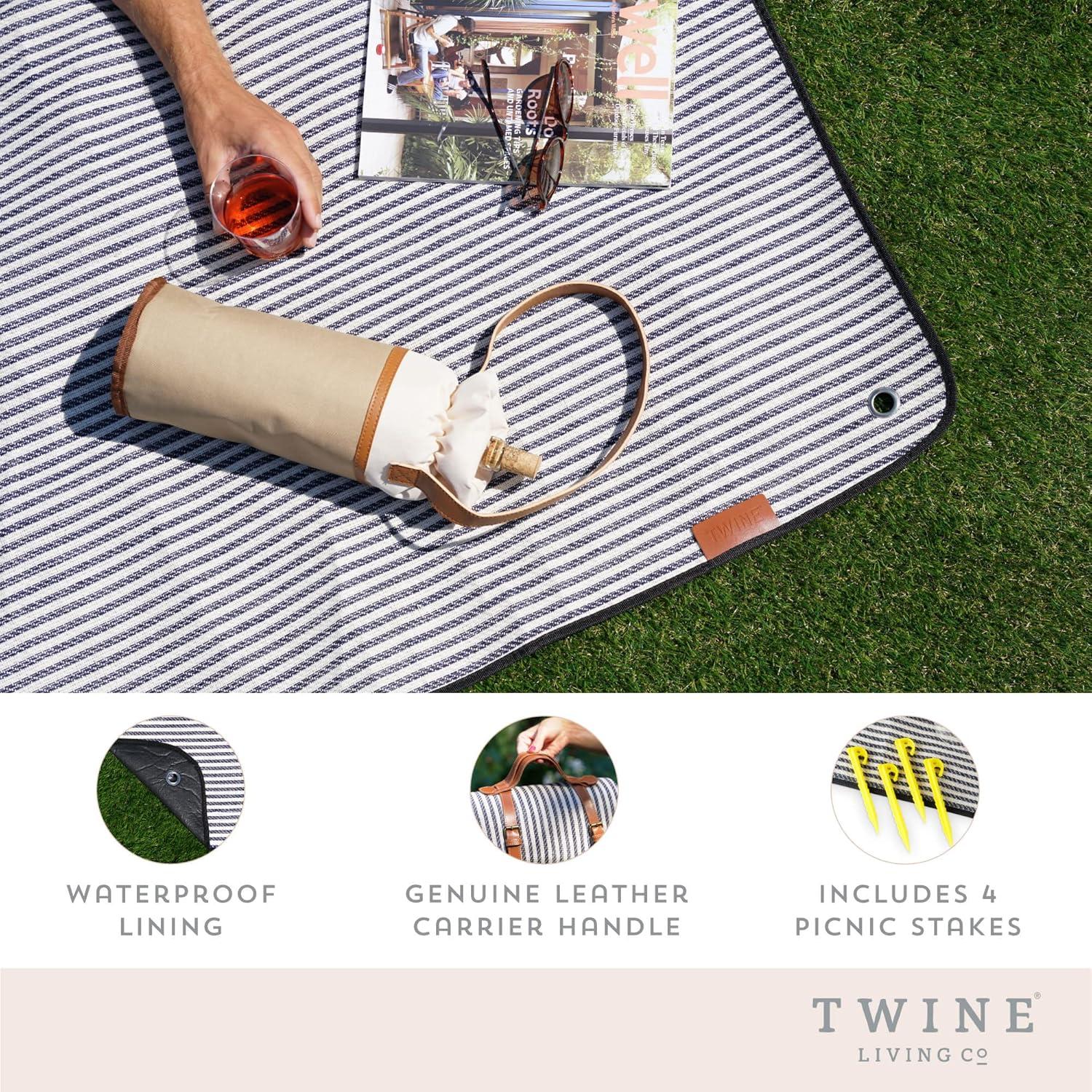 Twine Picnic Blanket – Waterproof Outdoor Blanket with Leather Carrying Straps and Picnic Stakes – Navy/White Striped 6pc Set of 1(Picnic Blanket)