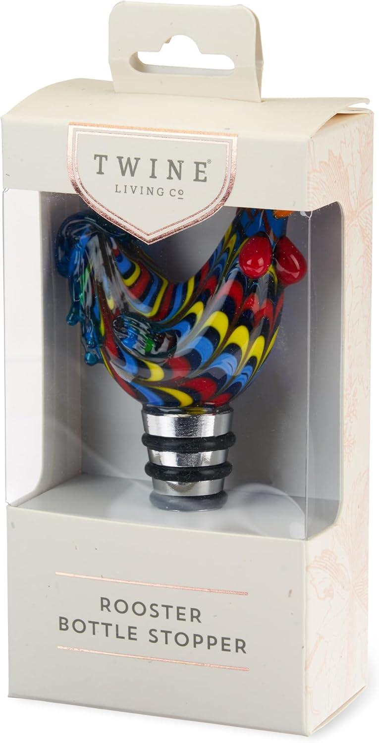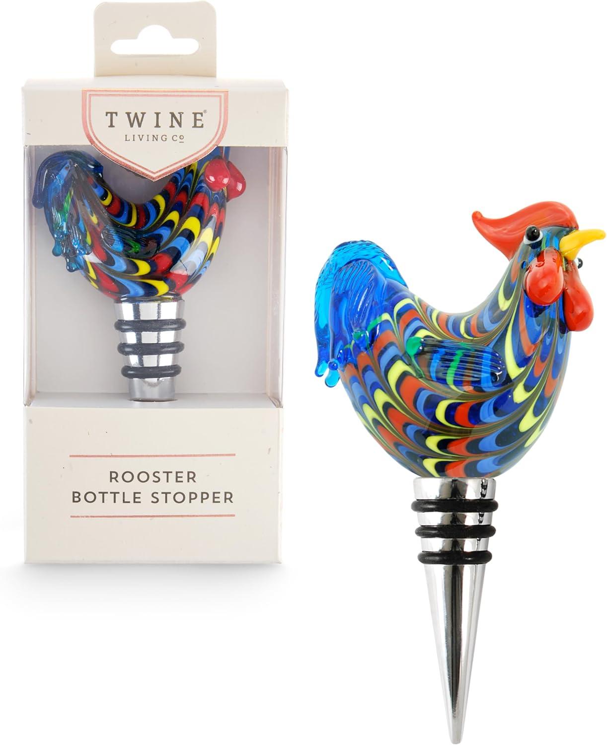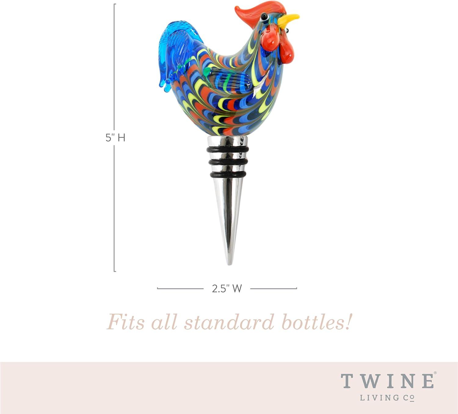 Twine Rooster Bottle Stopper, Glass Rooster Wine Bottle Stopper, Keep Wine Fresh, Glass, Metal, Multicolor, Set of 1(Rooster)