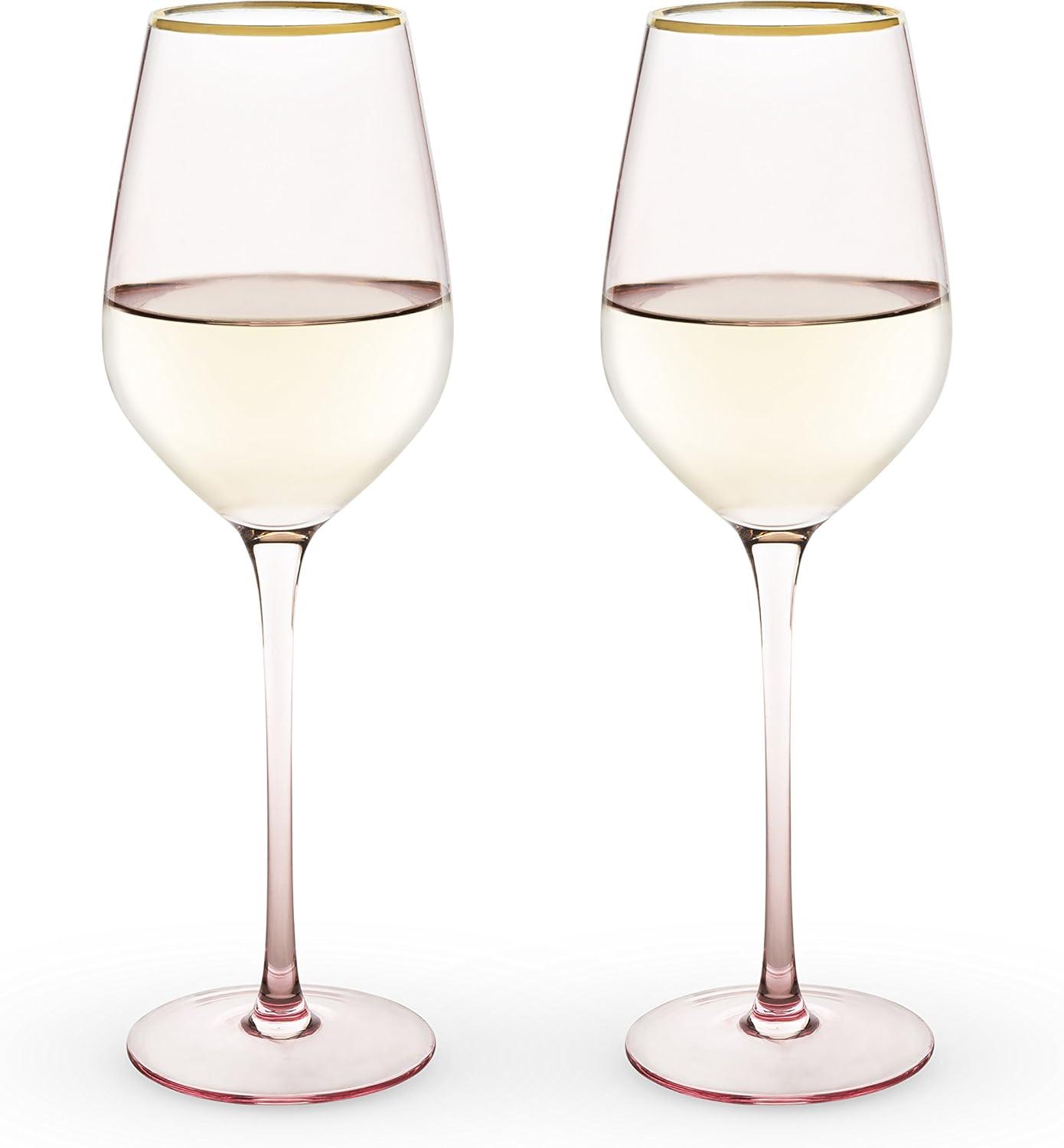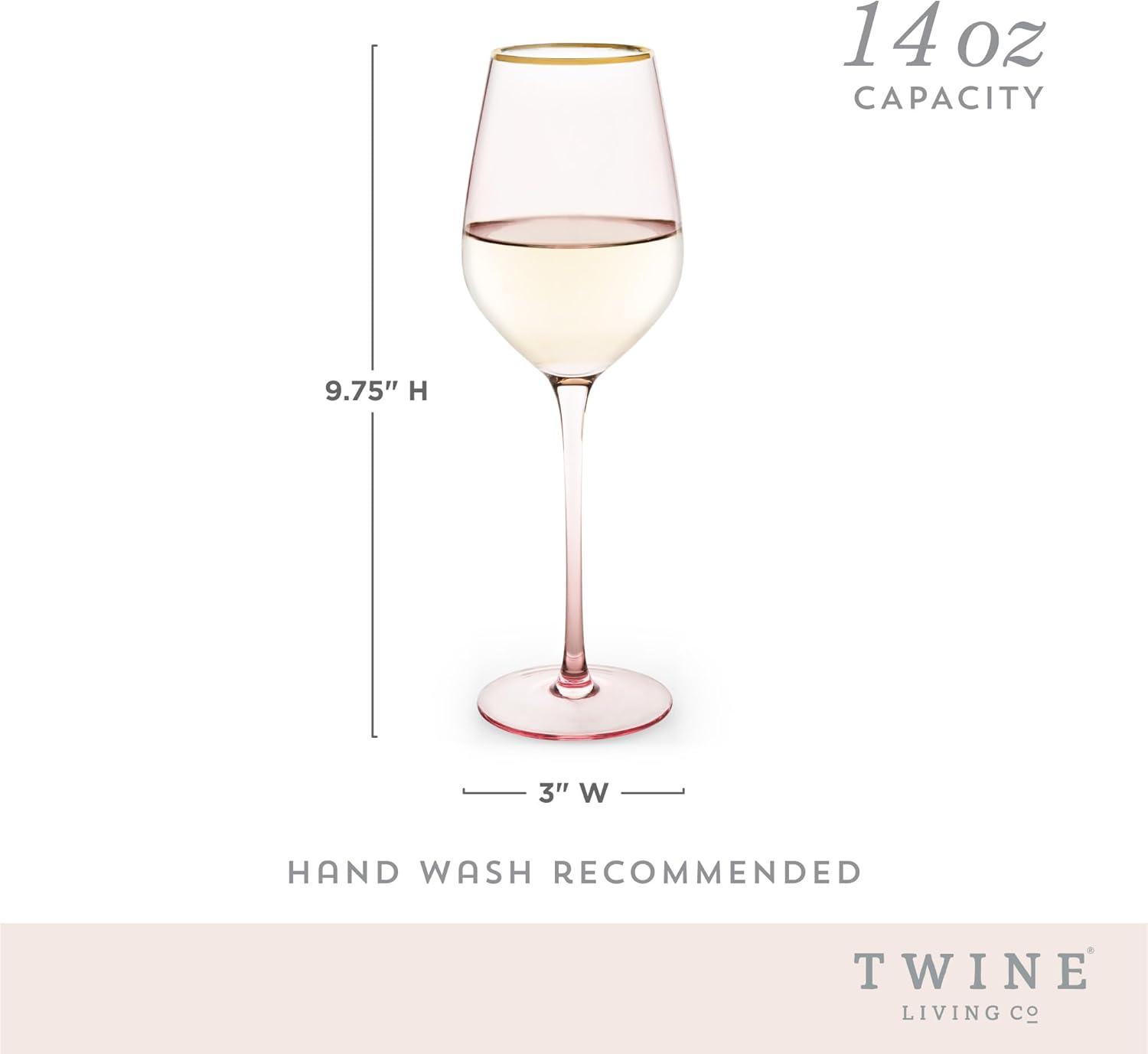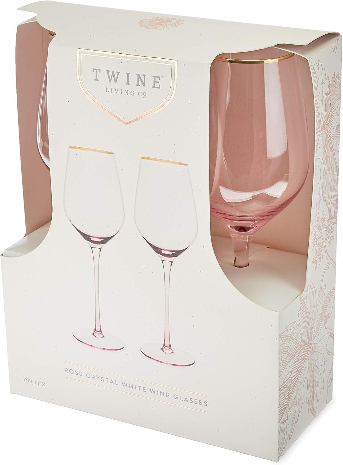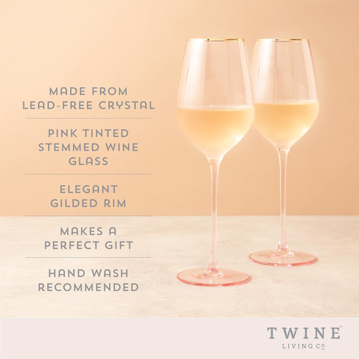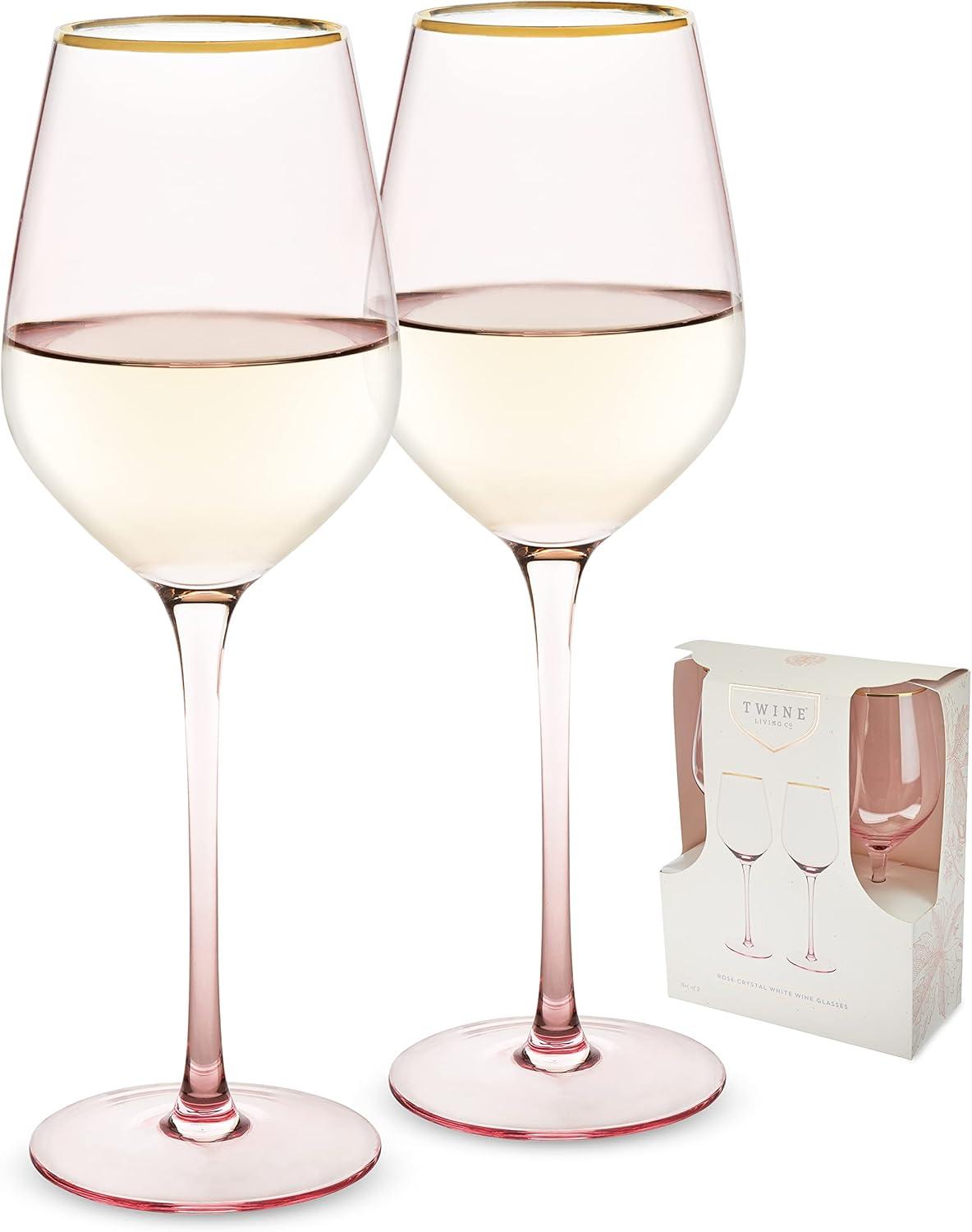 Twine Rose Crystal Stemless Wine Glasses Set, Pink Tinted with Gold Rim, Elegant Drinking Glasses for Red and White Wines, Wedding Gifts, Housewarming, Decorative Glassware, Home Bar,18 oz, Set of 2(White Wine Glass)