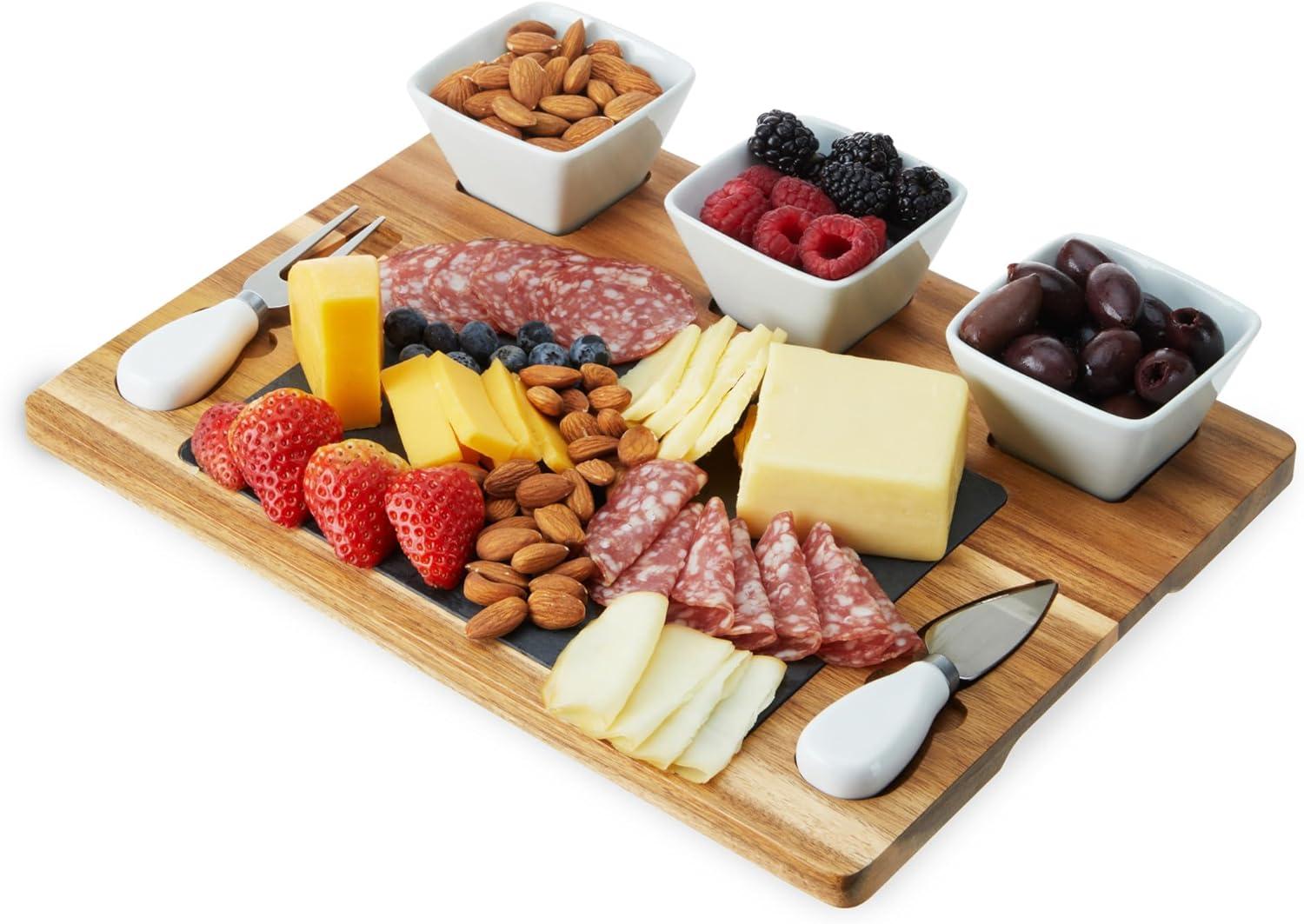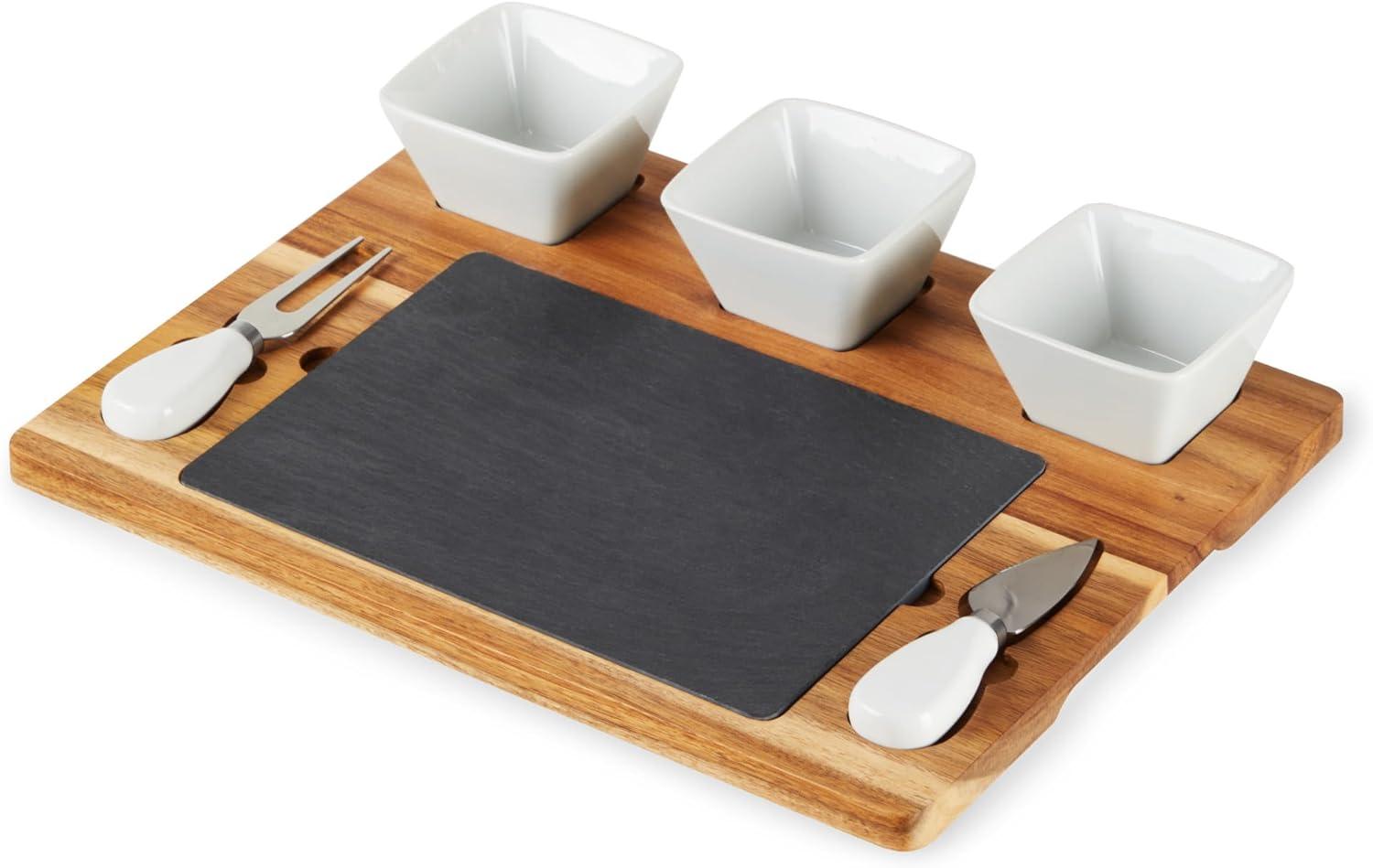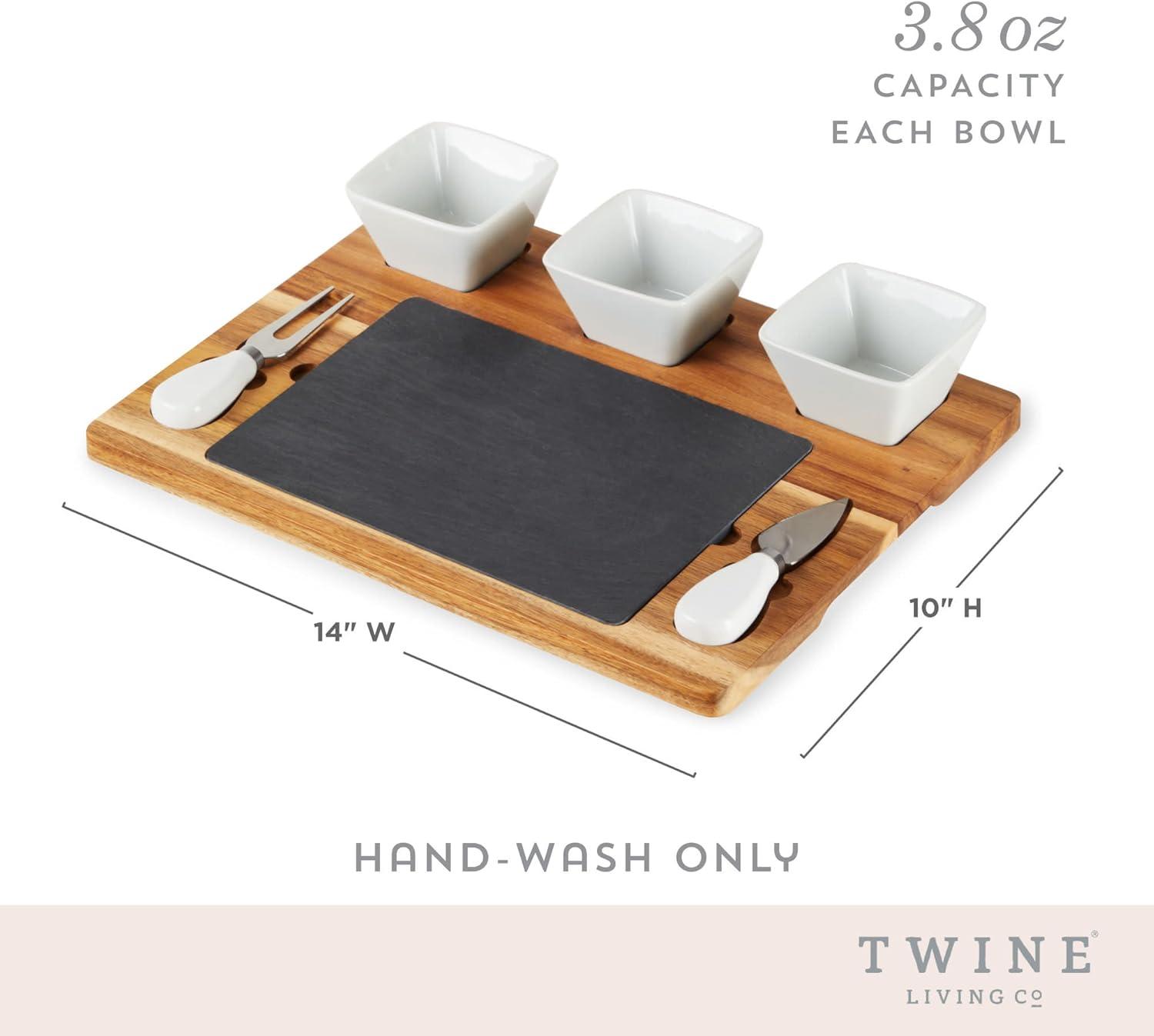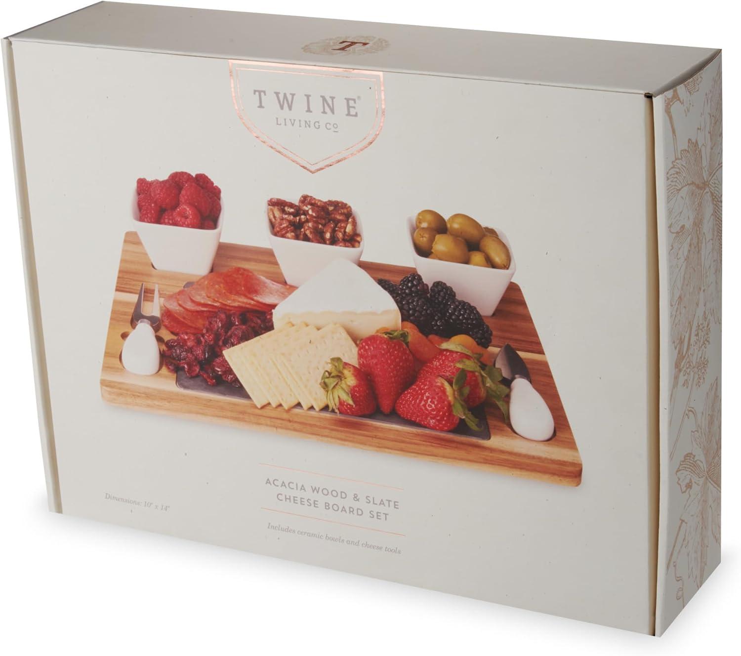 Twine Rustic Farmhouse Tapas Board Serveware, Acacia Wood Plank, Cheese Tray with Handle Brown(Acacia & Slate Cheese Board)