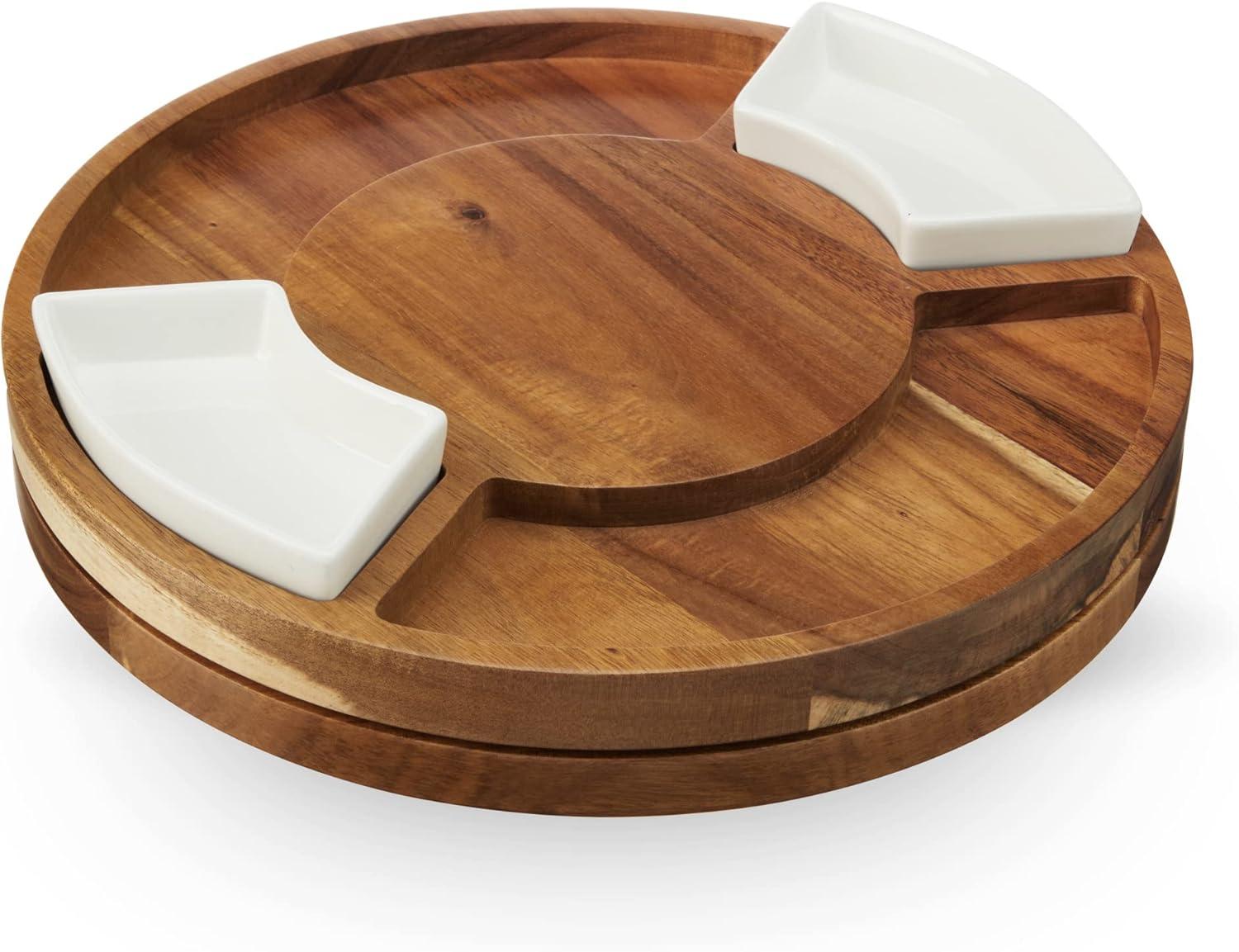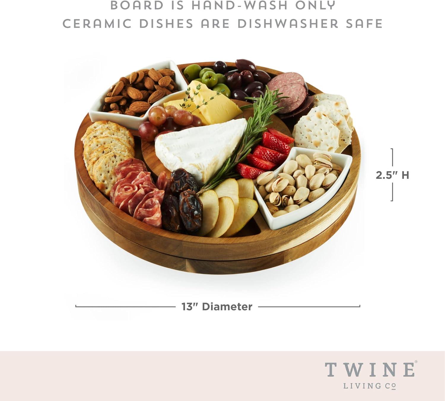 Twine Rustic Farmhouse Tapas Board Serveware, Acacia Wood Plank, Cheese Tray with Handle Brown(Charcuterie Lazy Susan)