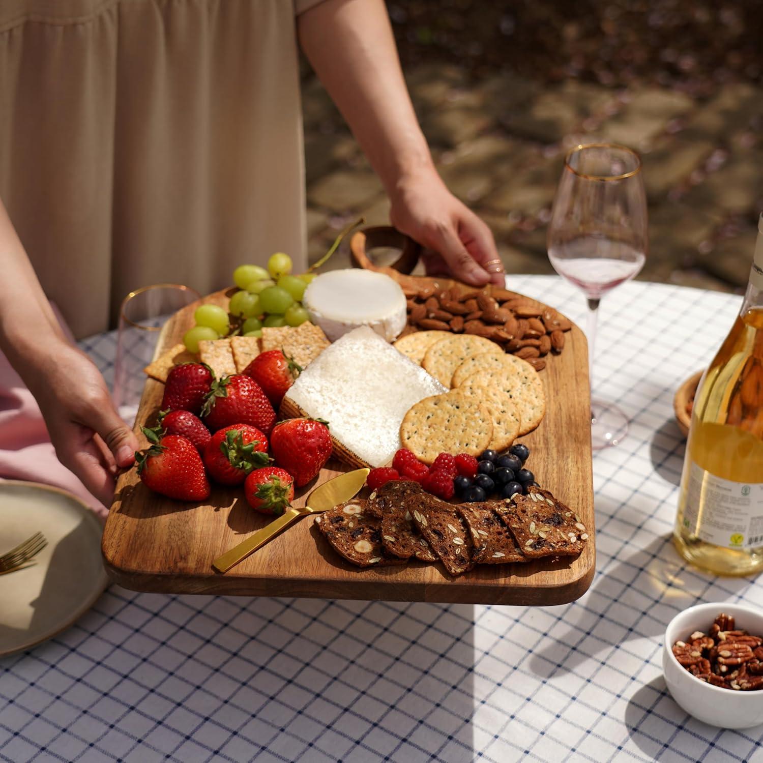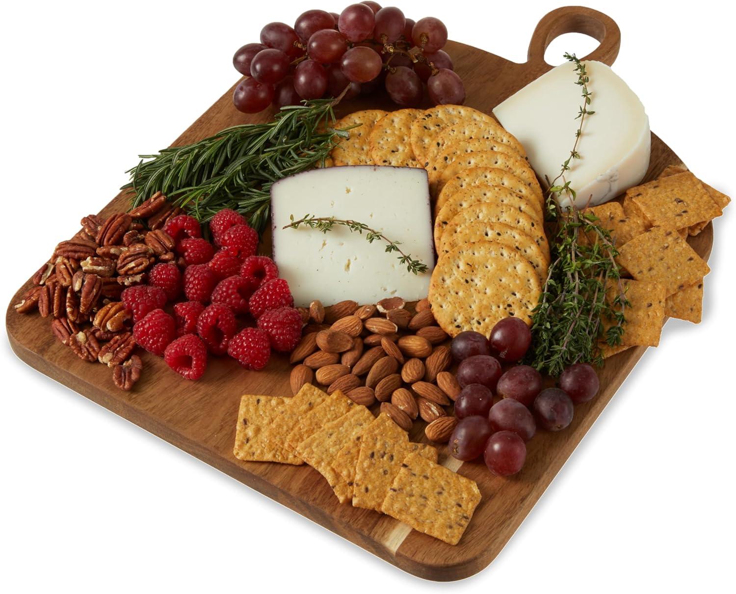 Twine Rustic Farmhouse Tapas Board Serveware, Acacia Wood Plank, Cheese Tray with Handle Brown(Large Acacia with Handle)