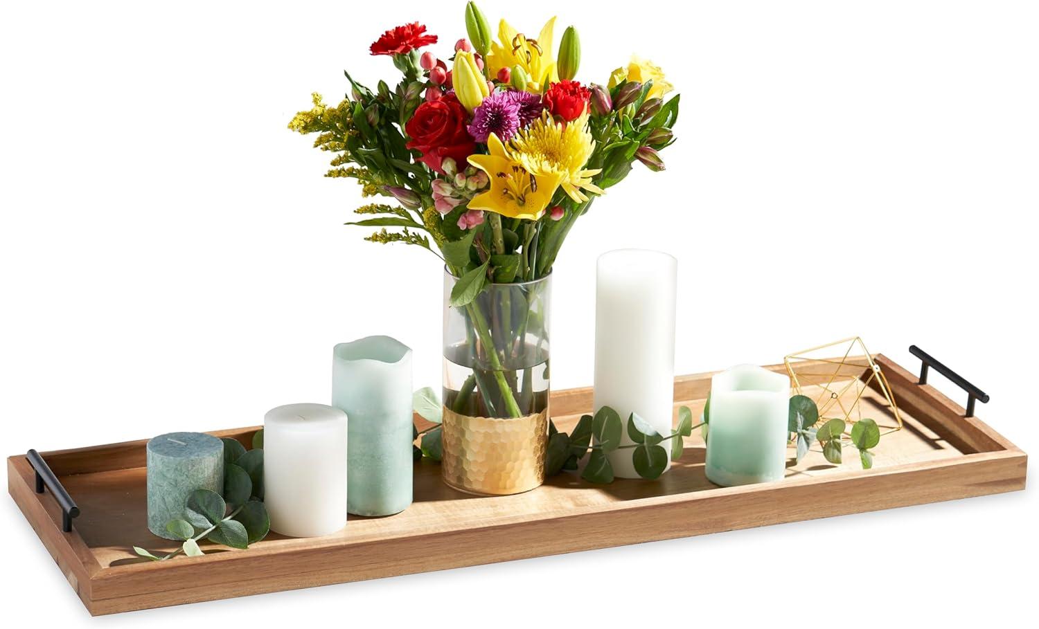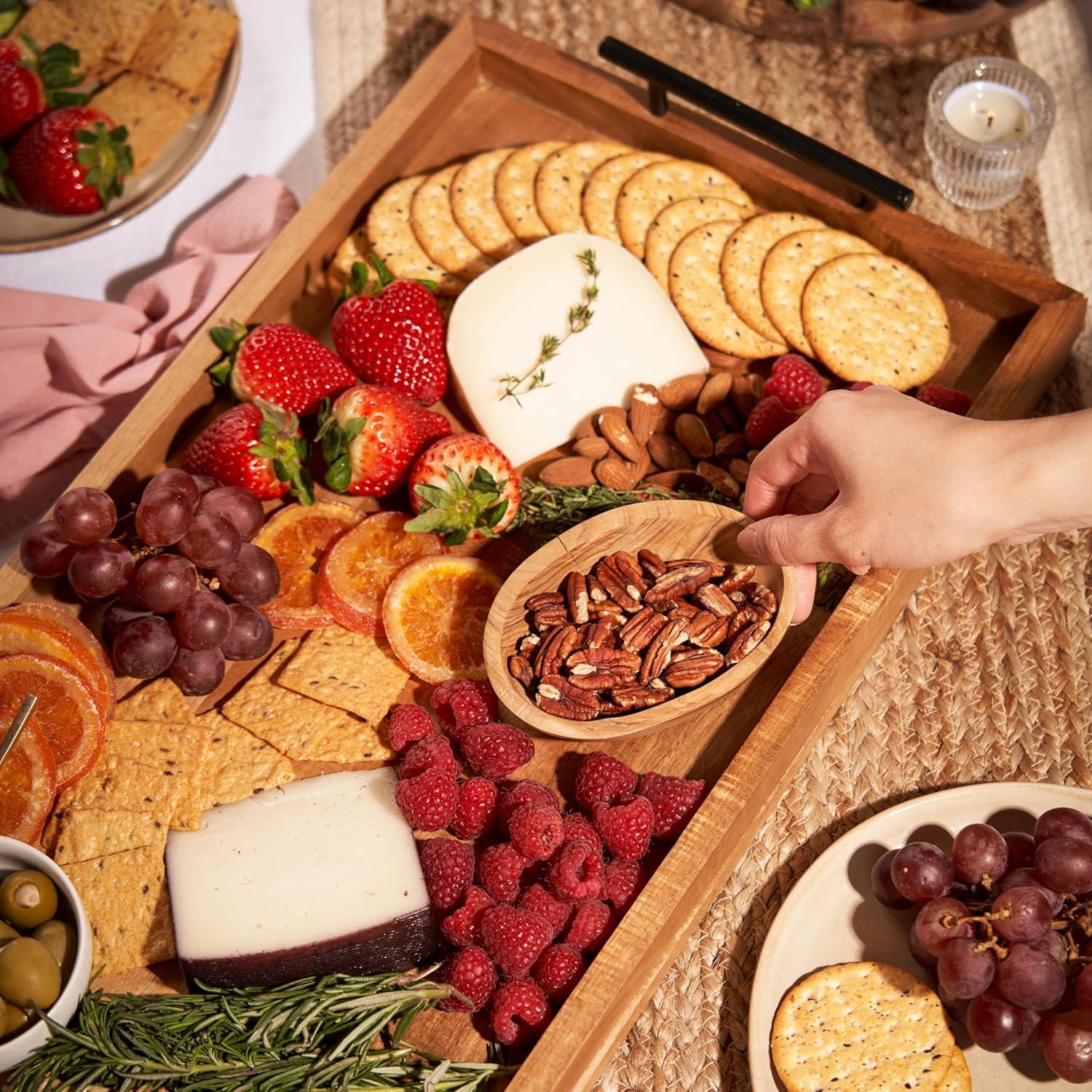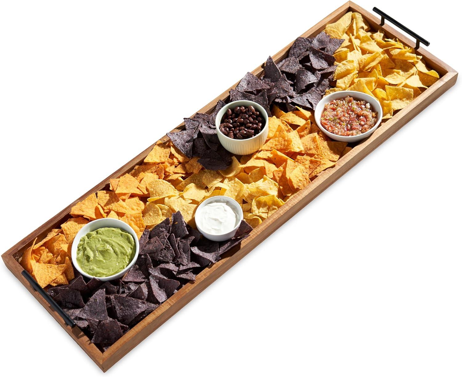 Twine Rustic Farmhouse Tapas Board Serveware, Acacia Wood Plank, Cheese Tray with Handle Brown(Modern Manor Longboard)