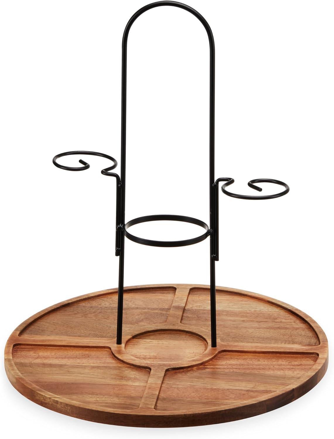 Twine Rustic Farmhouse Tapas Board Serveware, Acacia Wood Plank, Cheese Tray with Handle Brown(Wine and Cheese Caddy)