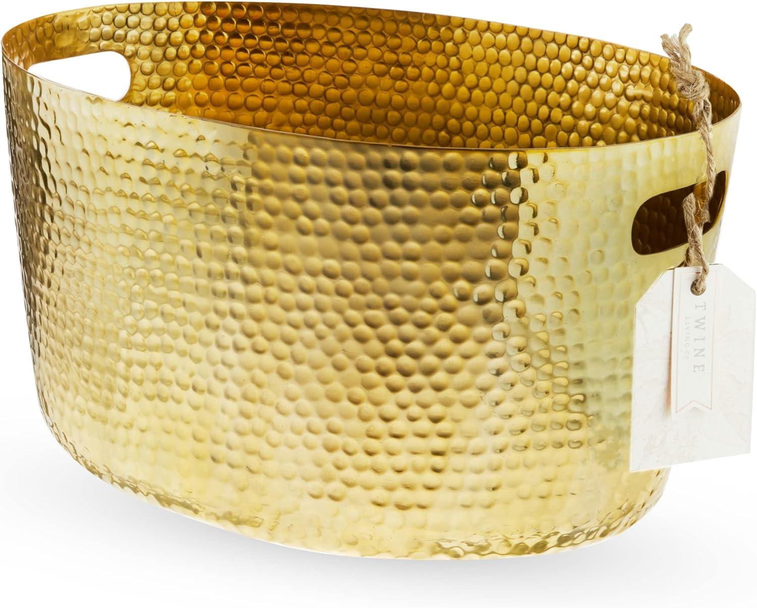 Twine Seaside Jute Rope Wrapped Farmhouse Galvanized Ice Metal Beverage Tub, Wine, Beer Bottle Bucket, 4.5 Gallons(Gold Beverage Tub)