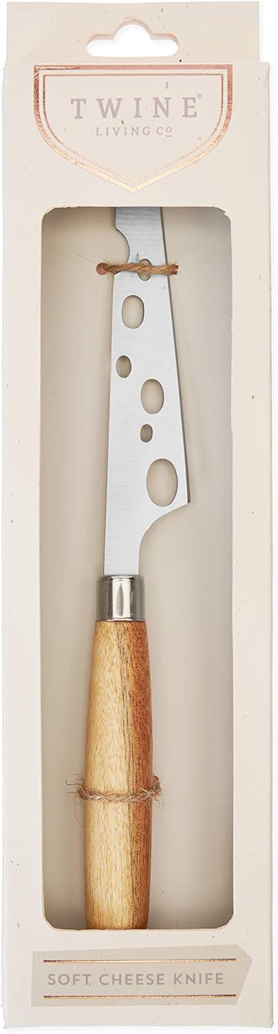 Twine Soft Cheese Knife – Stainless Steel Knife Set – Charcuterie Tools Cheese Board Accessories – Stainless Steel and Wood, Set of 1