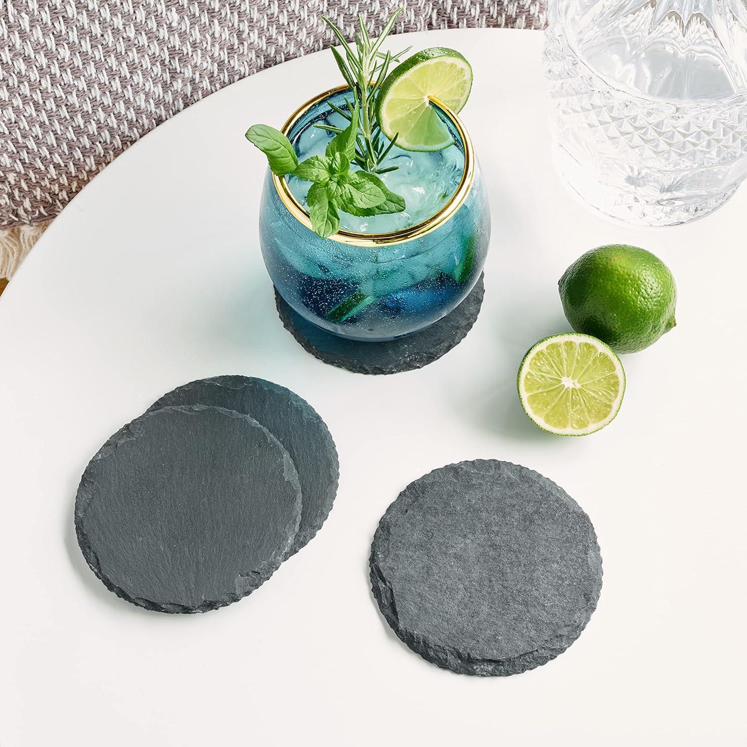BEAUTIFUL NATURAL SLATE CONSTRUCTION – Crafted from elegant slate with a velvet backing and shaped like squares with natural edges, this drink coaster set complements any decor style and gives your home a peaceful aesthetic.