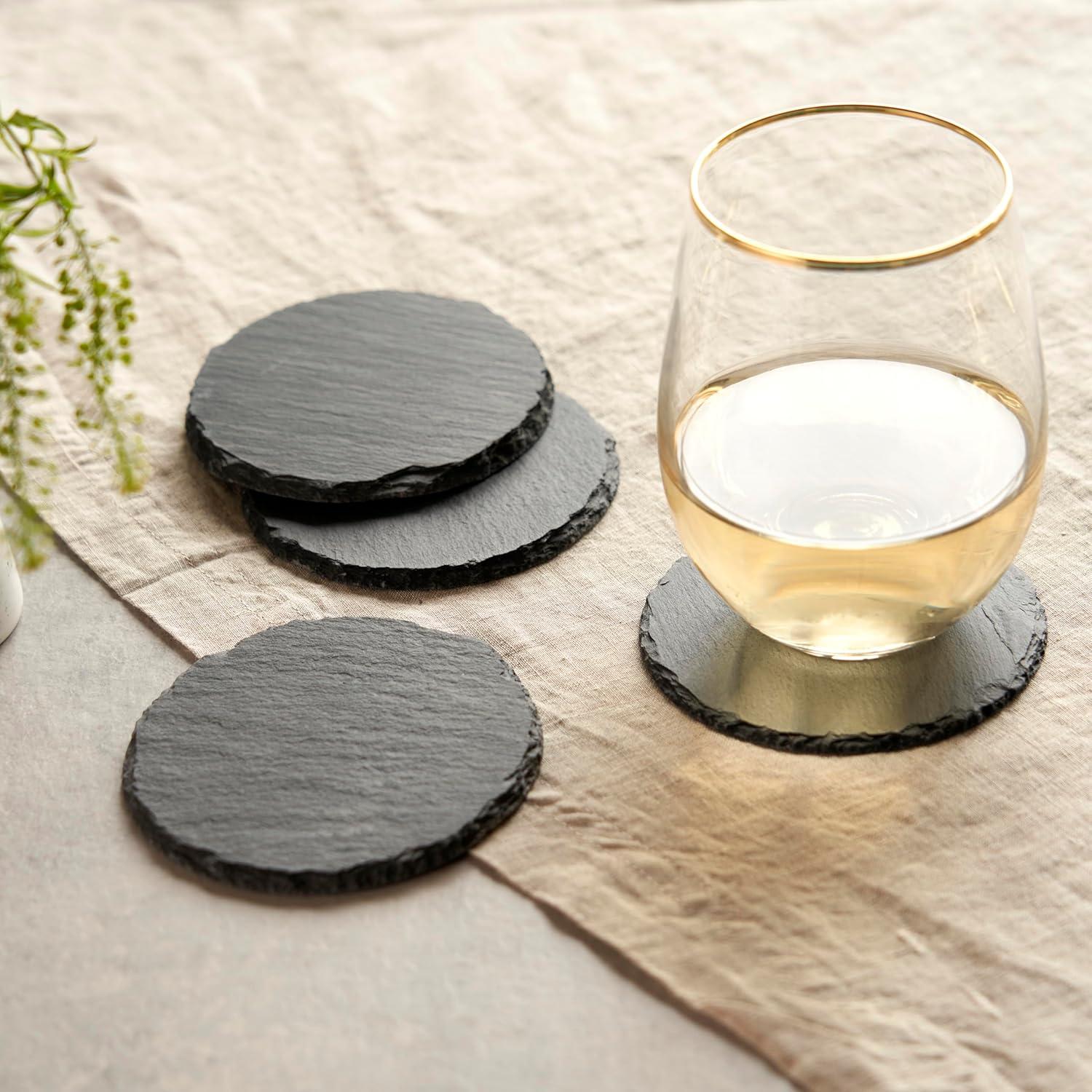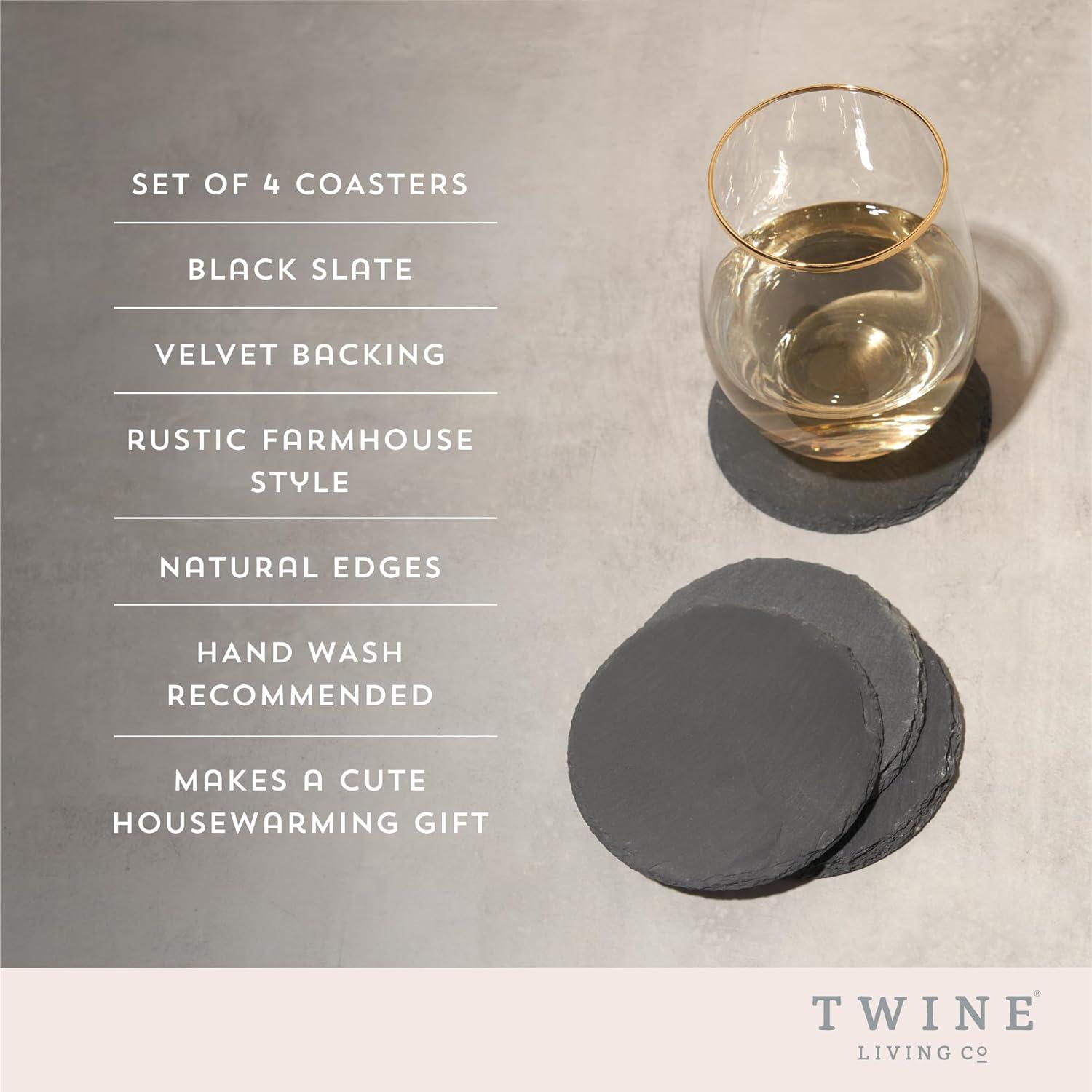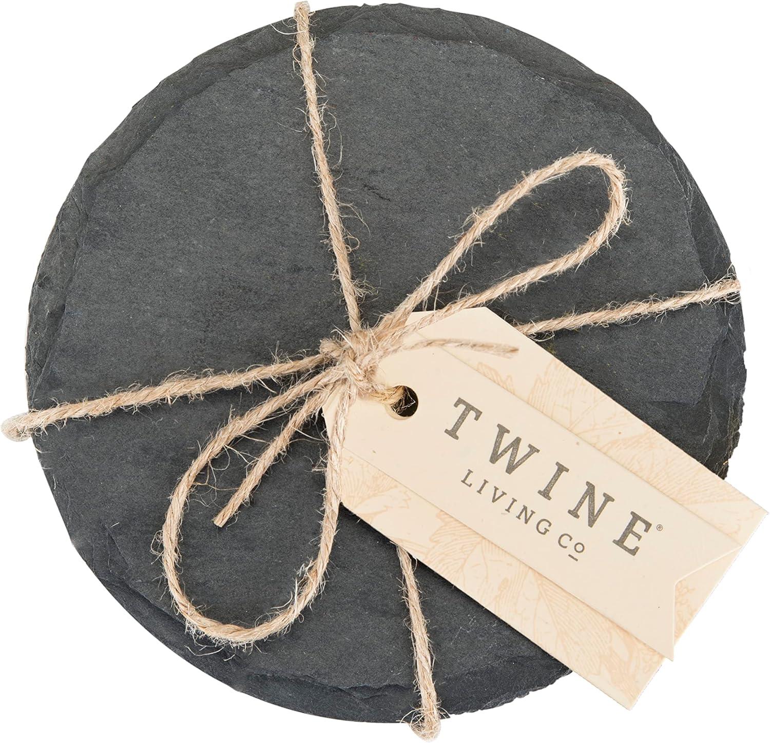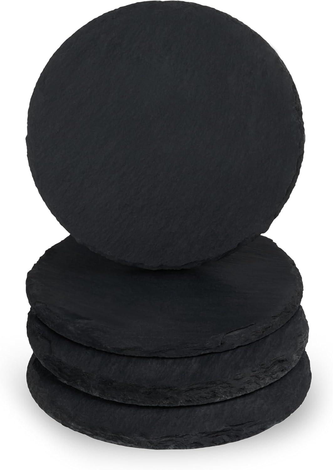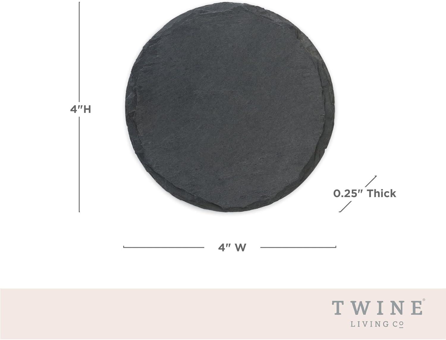 Twine Square Slate Coasters, Modern Square Coasters, Slate with Velvet Backing, Protect Tables and Surfaces, Black, Set of 4(Circle)