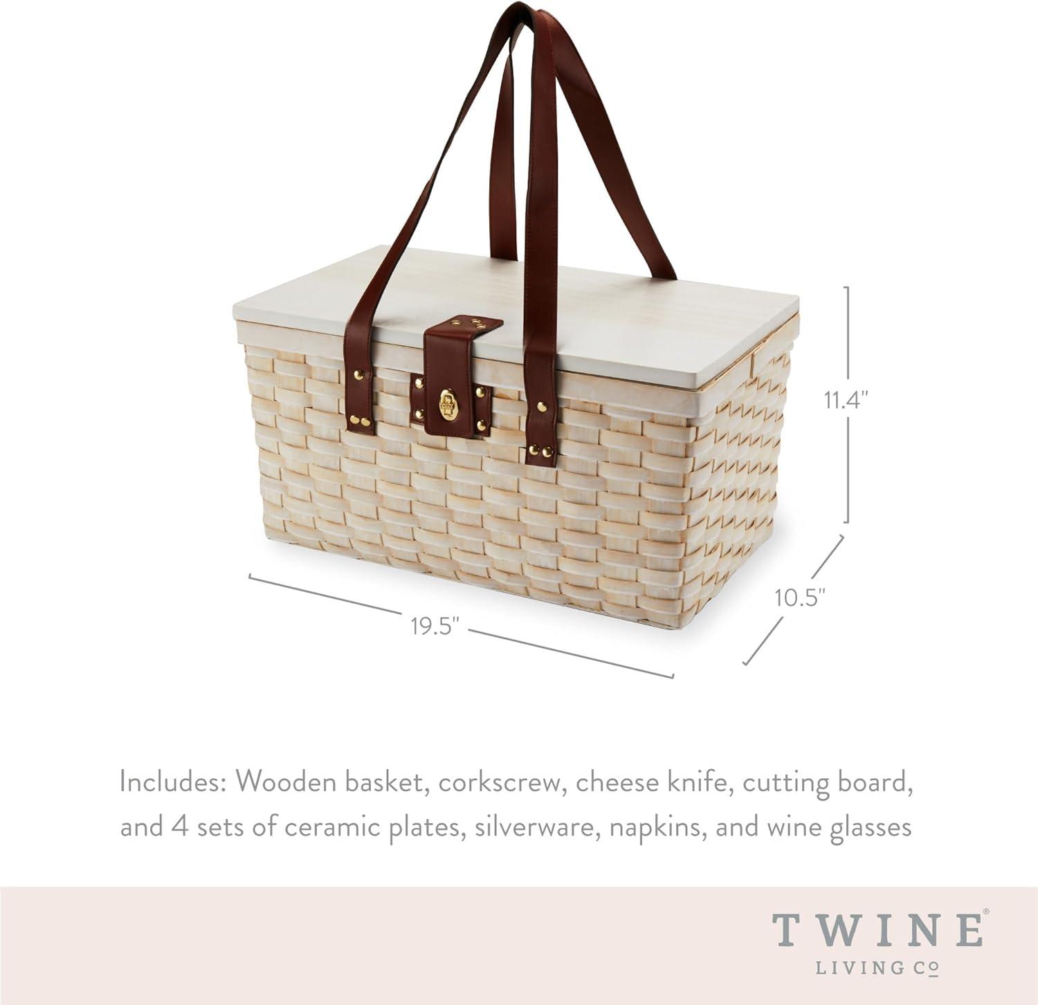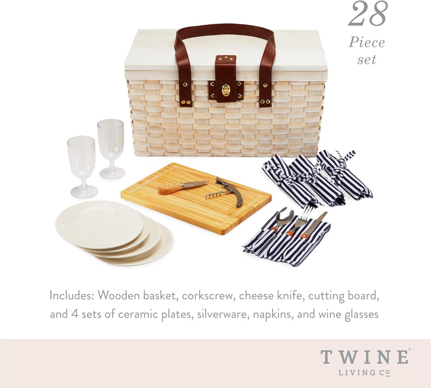 Twine Tahoe Outdoor Lid and Handle, Four Person Basket with Accessories Picnic Equipment 28-Piece Set, Set of 1, Cream/Ivory