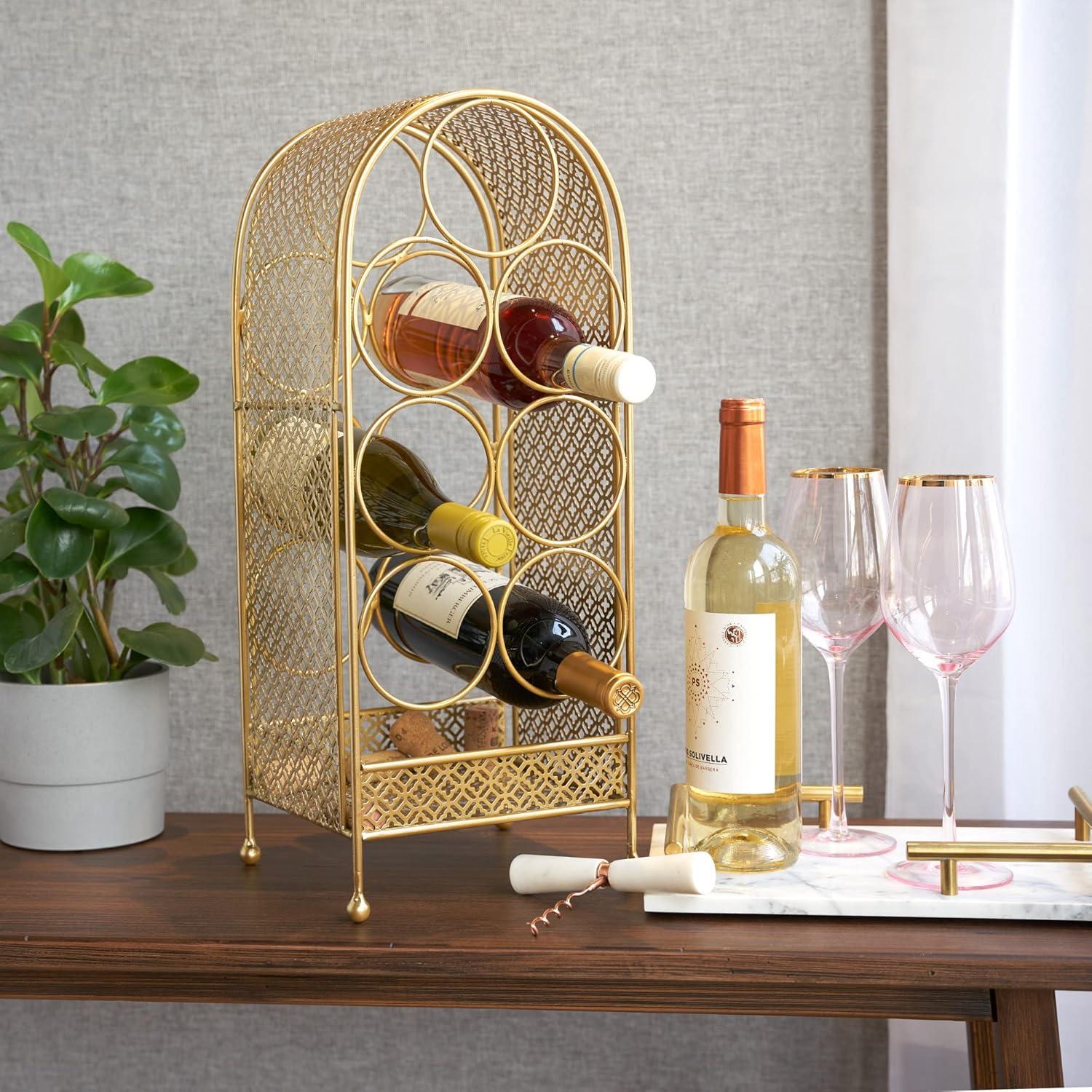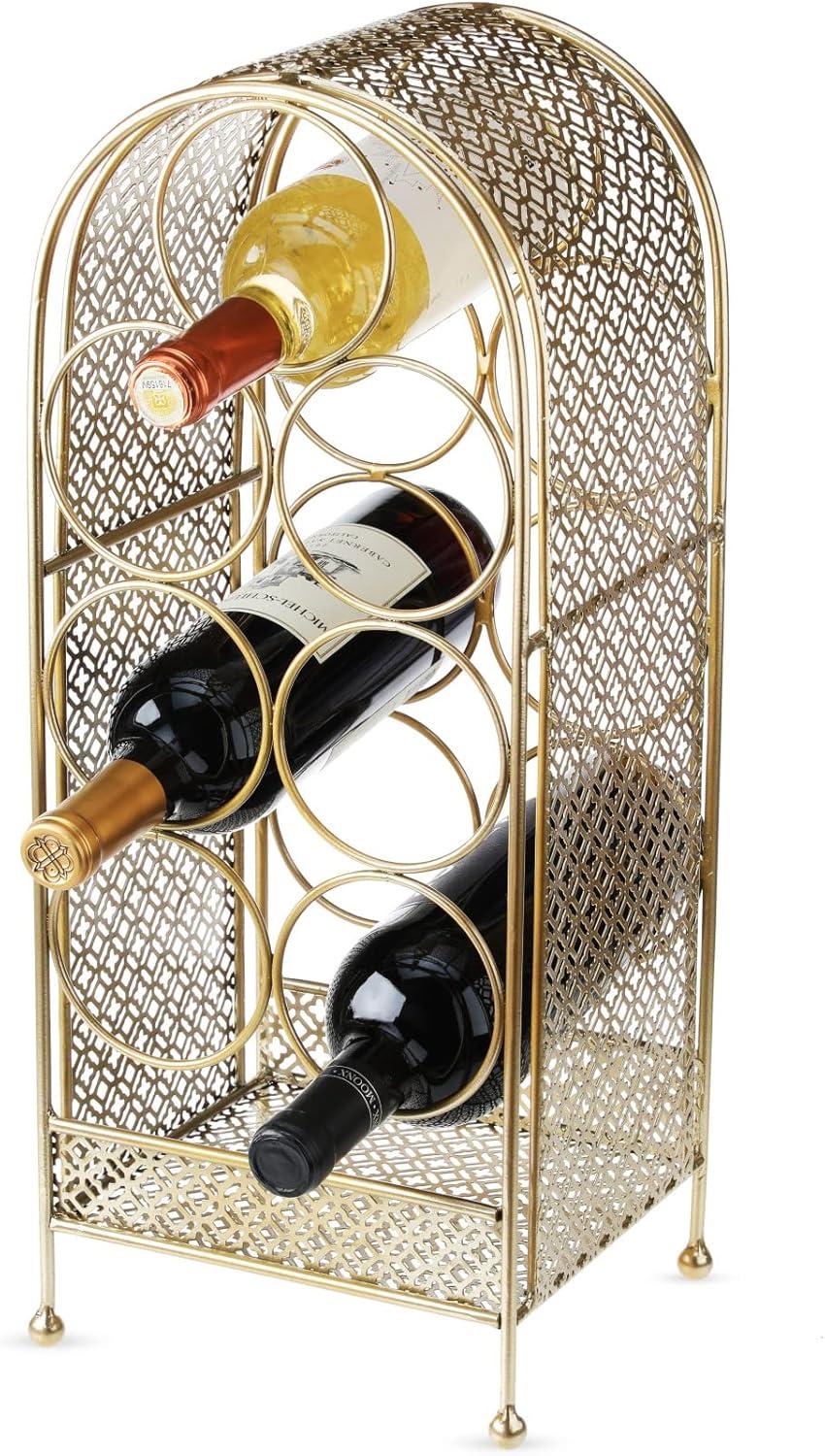 ELEGANT TABLETOP WINE RACK – This luxurious wine bottle holder looks right at home in any vintage-styled kitchen, or on any metal bar cart. The airy, open frame with delicate latticework brings lush texture and decadence to your wine storage.