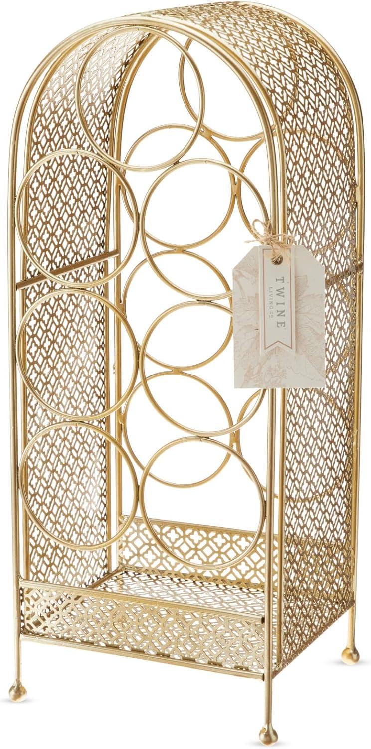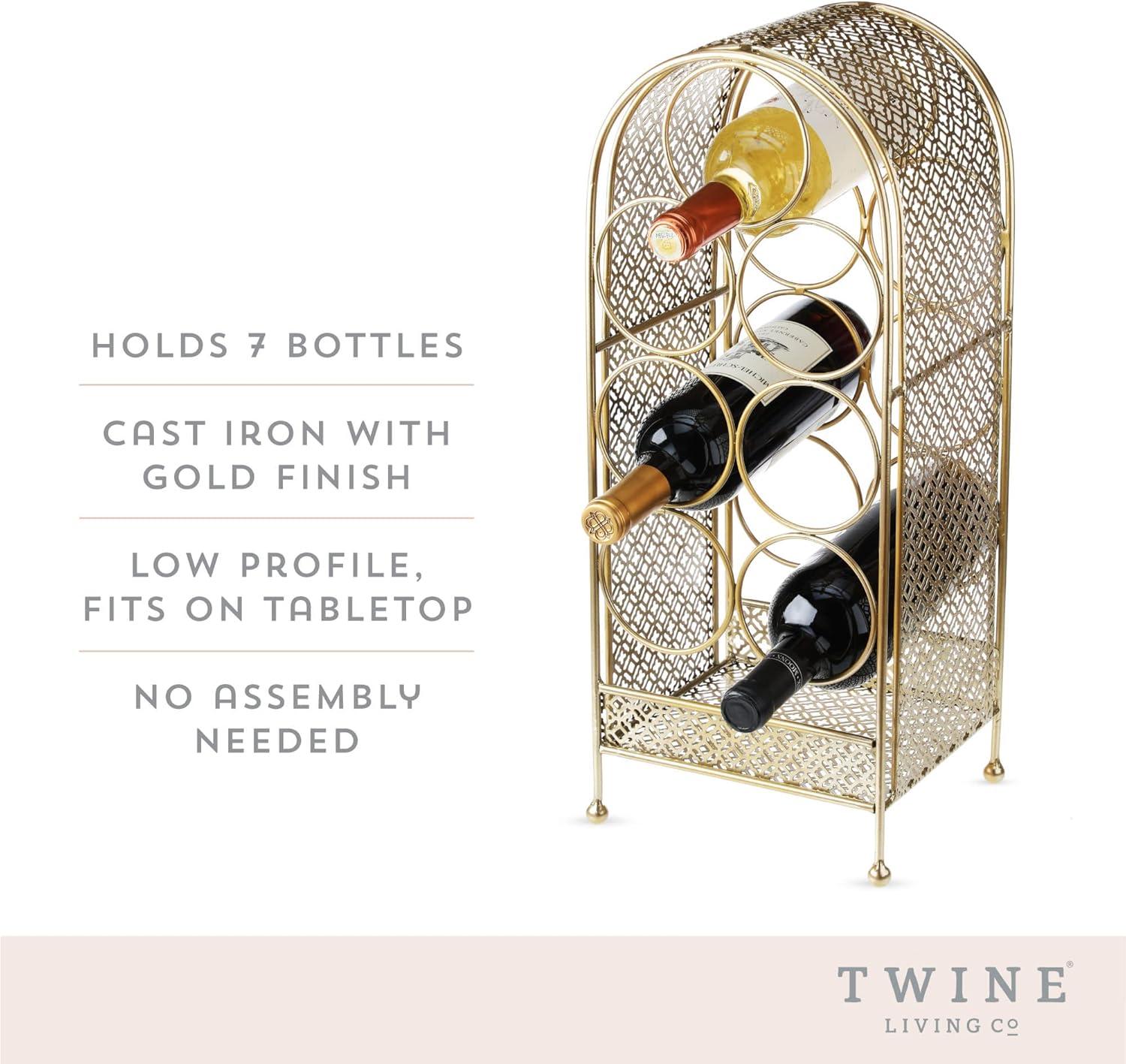 Twine Trellis Wine Rack, Holds 7 Bottles, Gold Countertop Wine Storage, Cast Iron(Trellis Wine Rack – 7 Bottle)