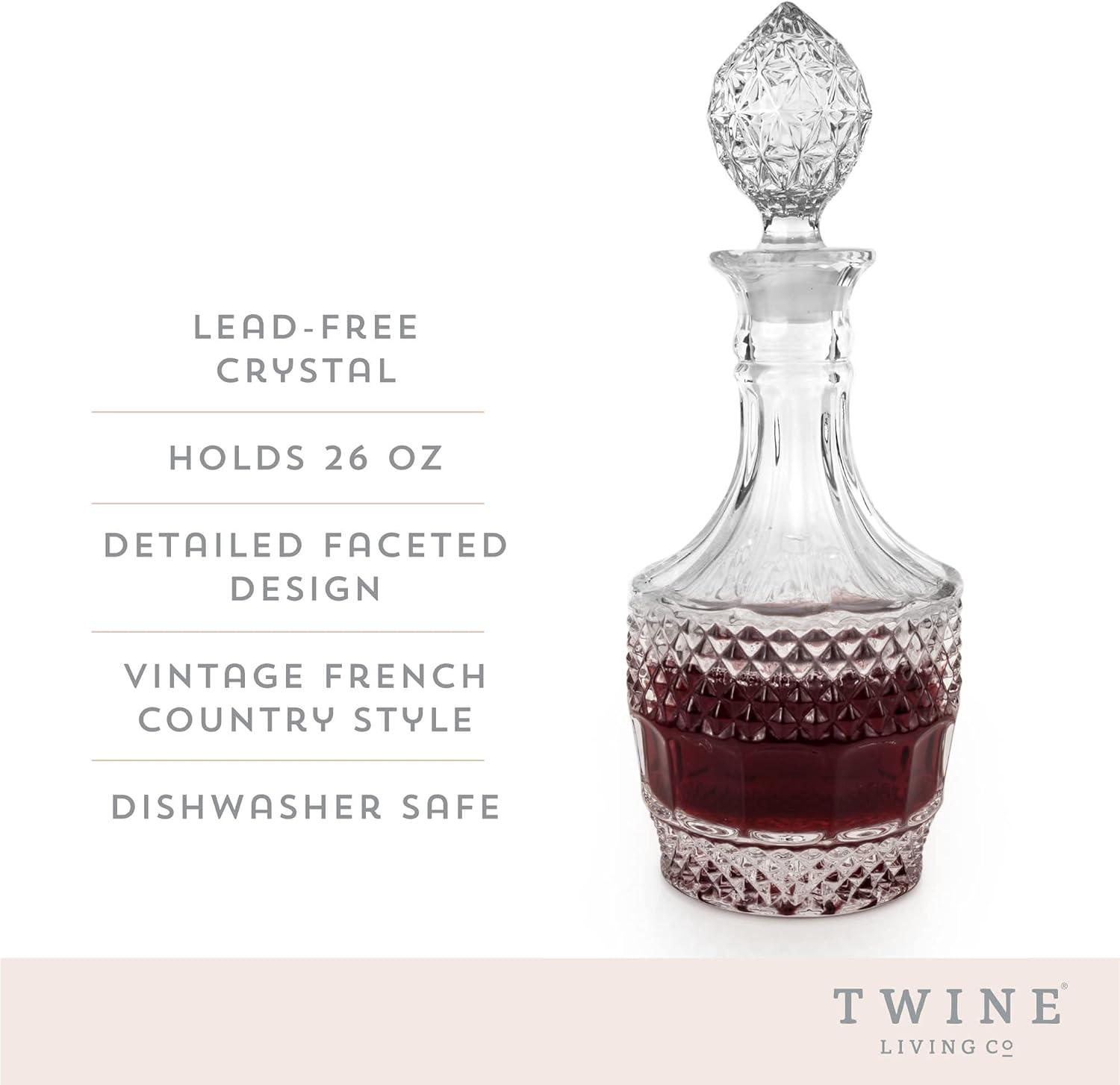 Twine Vintage Cut Crystal Decanter – Liquor Decanter for Wine, Dishwasher Safe, 26 Ounces – Set of 1(Vintage)