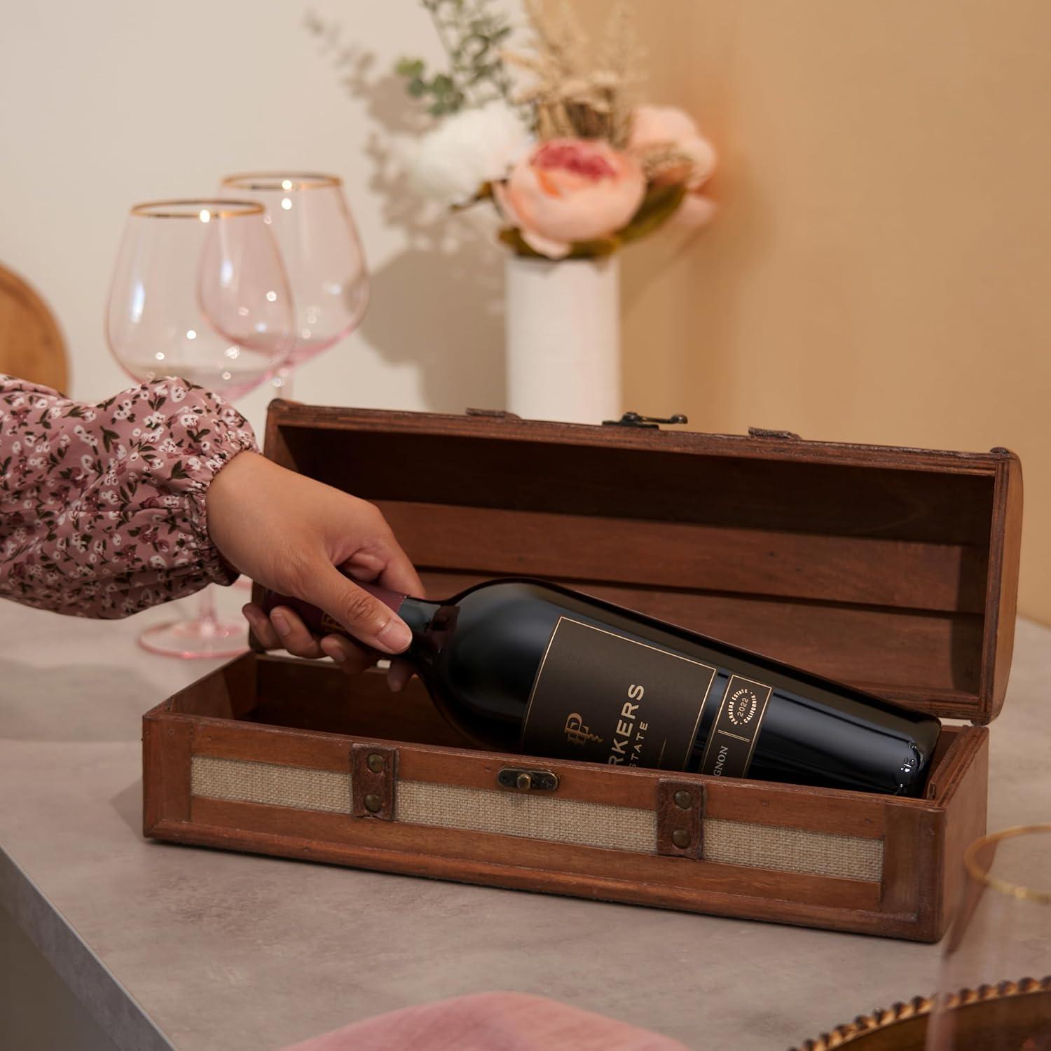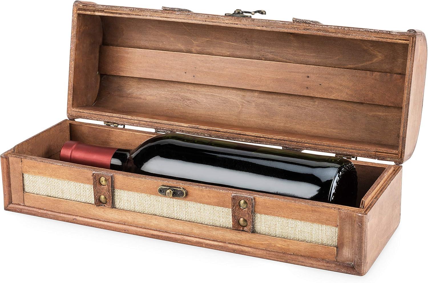 UPGRADE YOUR WINE BOTTLE GIFTING – This vintage trunk style wooden wine box elevates the usual gift bottle experience beyond the basic wine bag. Also works as a great storage solution in your home, keeping bottles away from light. 14.5″ H x 8.5″ W x 6″ D.