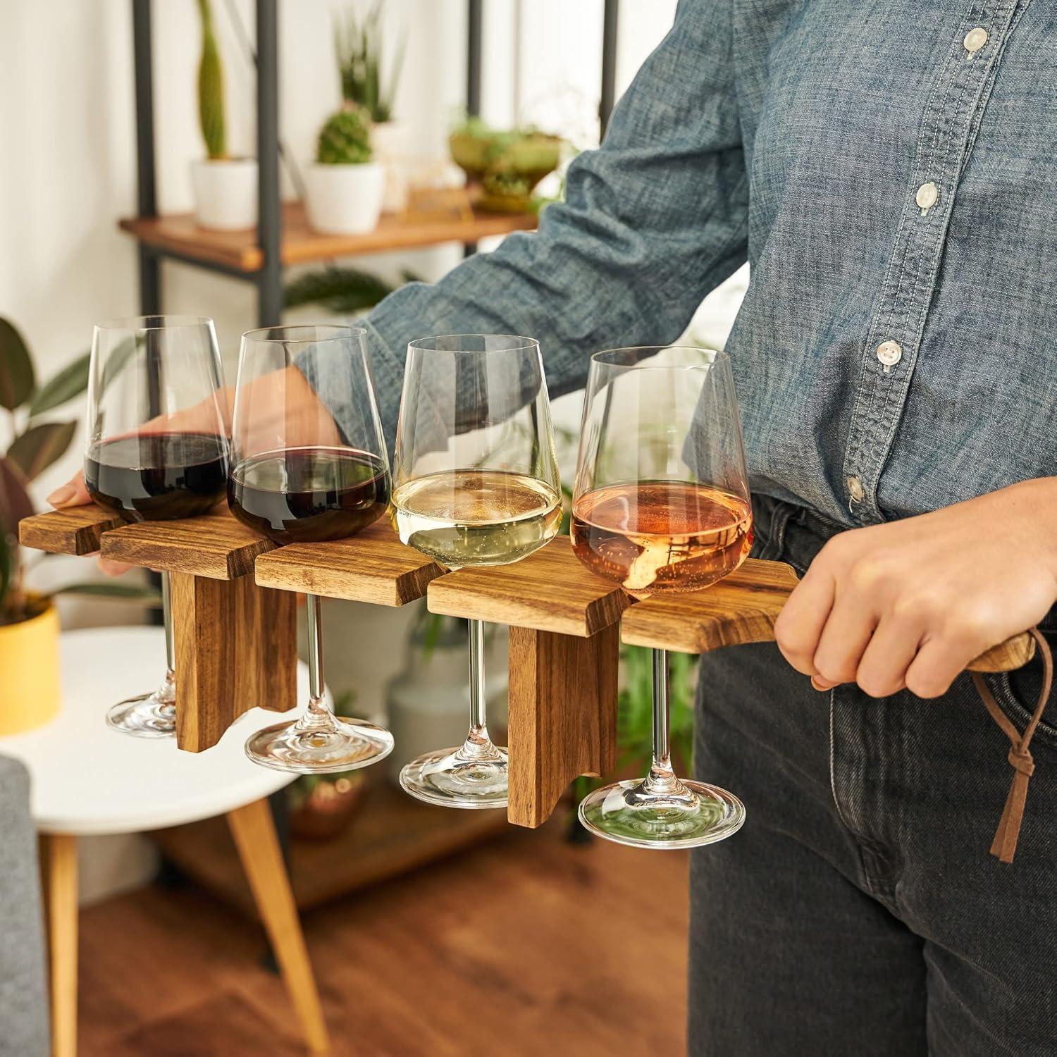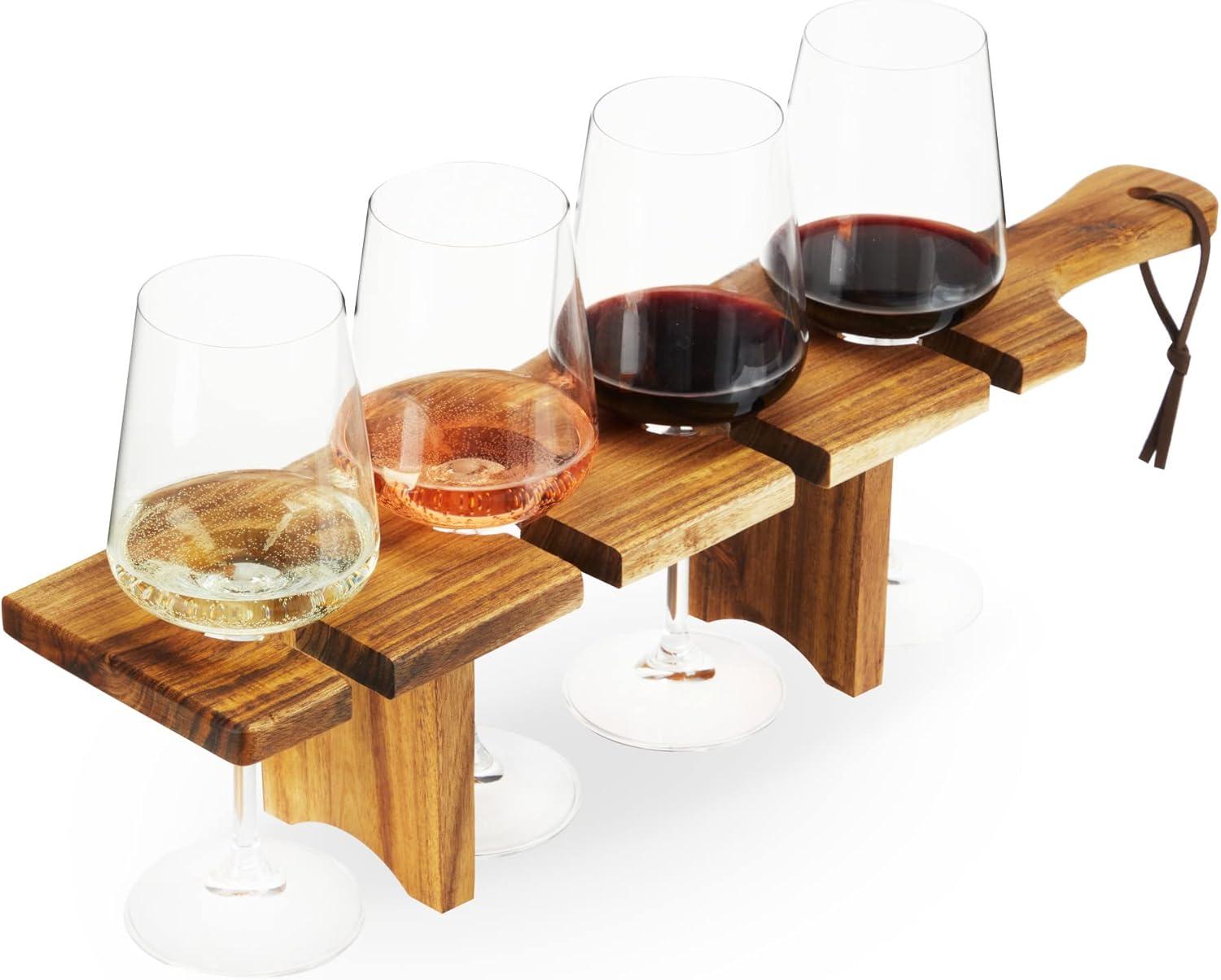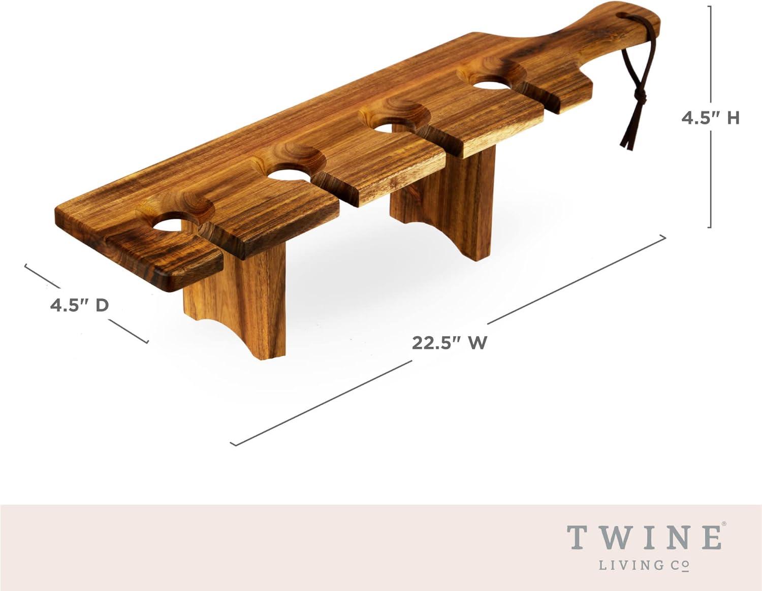 Twine Wine Flight Board with Slate Chalkboard & Acacia Wood Tray, Holds 4 Glasses, Includes Soapstone Chalk, Perfect for Wine Tasting Parties, Housewarming, Hosting Essentials(Easy Transport Flight)